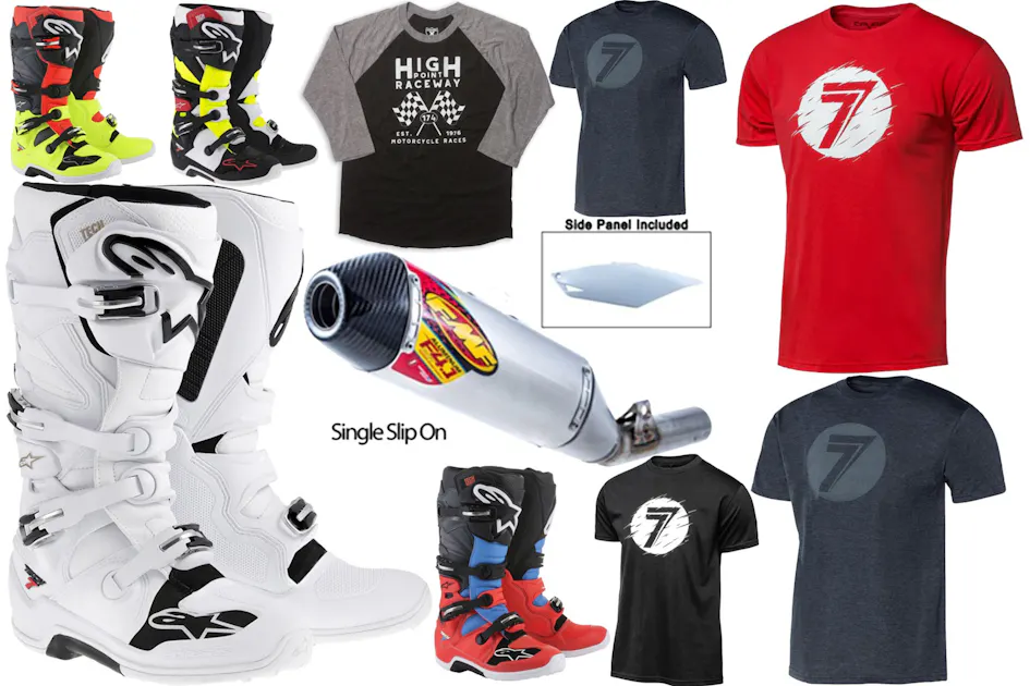 This week, MotoSport.com brings you the Seven Dot T-Shirt, the FMF Factory 4.1 RCT Slip-On Exhaust, and Alpinestars 2019 Tech-7 Boots all with discounted prices. We also have a deal on the Racer X High Point Raceway 3/4 Sleeve Raglan shirt this week. Click the products below and order today!