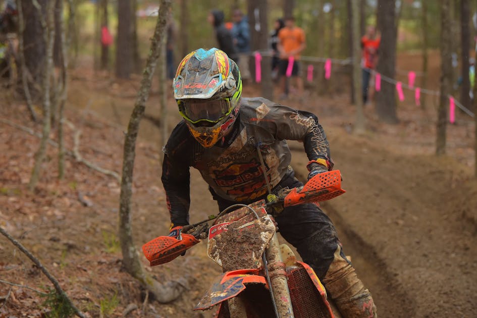FMF KTM’s Kailub Russell has announced 2020 will be his final season competing for Grand National Cross Country Championships, and so far his quest for an eighth-straight crown looks perfect, with three wins in three rounds. Sunday’s victory wasn’t easy, though, as Steward Baylor found his groove on his new FactoryONE Sherco and appeared to have the win in hand—until he went wide in a corner on the motocross track within sight of the finish. Russell sailed past him to steal the lead with four turns to go.