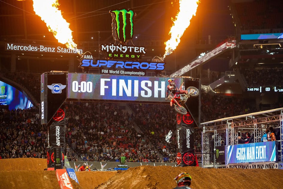 While there aren't any live races to watch on TV at the moment, that doesn’t mean you can’t watch racing. Remember, YouTube and the NBC Sport Gold SX/MX pass are our friends. Until racing returns, check out some old school races on YouTube or watch below, as we show all the finish line celebrations from the first ten rounds of 2020 Monster Energy AMA Supercross–via gifs. Tell us your favorite one below in the comment section! Enjoy.