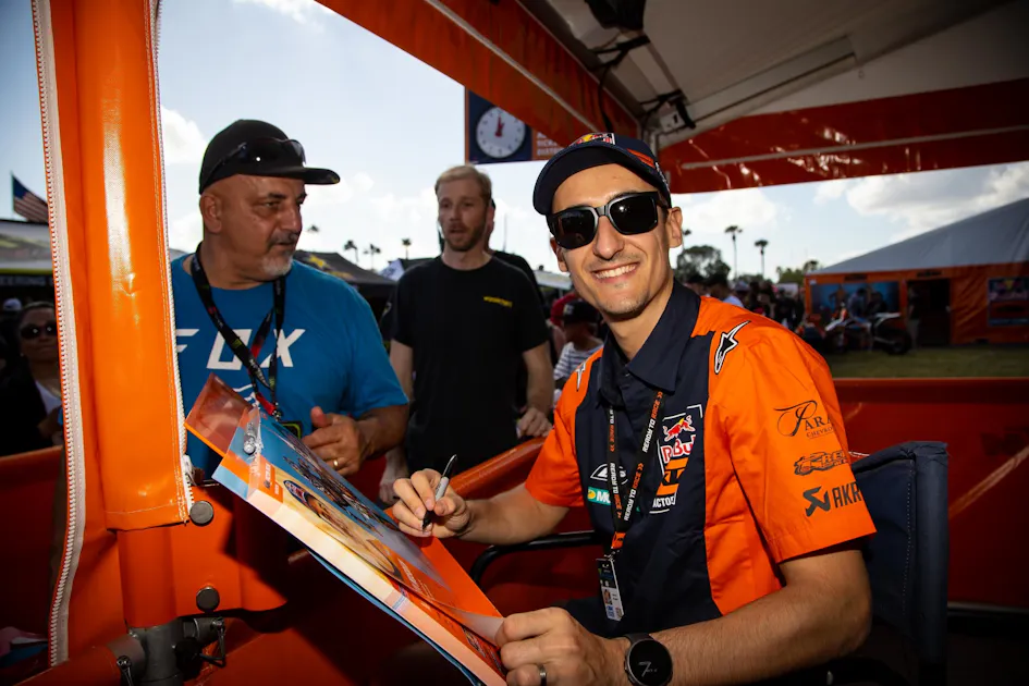 Definitely a lot of battles. Everybody has been pretty healthy. It’s been a lot of good guys out there, compared to other years, I feel like. Obviously it’s strange for me because I’ve been out there racing all the time, even though after each race I go and watch the race at home, but when you’re not out there it’s really hard to imagine myself out there doing the same thing. It’s kind of strange. I know those guys are ripping. They’re fast, they’re strong. But how strong? But anyway, I try to learn and see what the other guys are doing. Even the 250 class as well has been really cool. A lot of intensity. I’ve been to the races as well. It’s funny because Frankie, my mechanic, has been at all the races. He gets super excited because he gets to go in the stands, and he’s never been in the stands because he’s always either in the pits or either on the track. He says, “Dude, I see so much more of the track. I’m going to give Mathilde the pit board and I’ll just stay in the stands when you come back!”