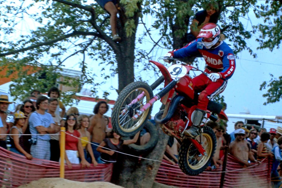 Smith was also a pioneer—he literally invented the idea of double jumping when he was the first rider to begin launching a downhill double of at the 1975 U.S. 125cc Grand Prix at Mid-Ohio. To that point, riders took every jump as singles, in part because promoters had to yet to think of building them close enough together, even in those early days of supercross. But Smith did it that day in 1975, and the exact moment he did was caught on film by none other than Wally Wallenberg, the late father of our man Scott Wallenberg. You can see it happen at the 1:15 mark of this home movie: