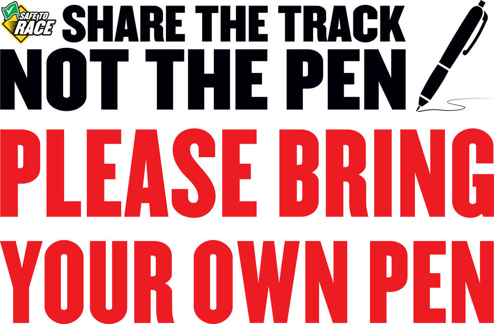 - Please remain in your pit area unless going to/from registration, concessions or the racetrack. Don’t roam or visit your neighbors - use your phone for that.