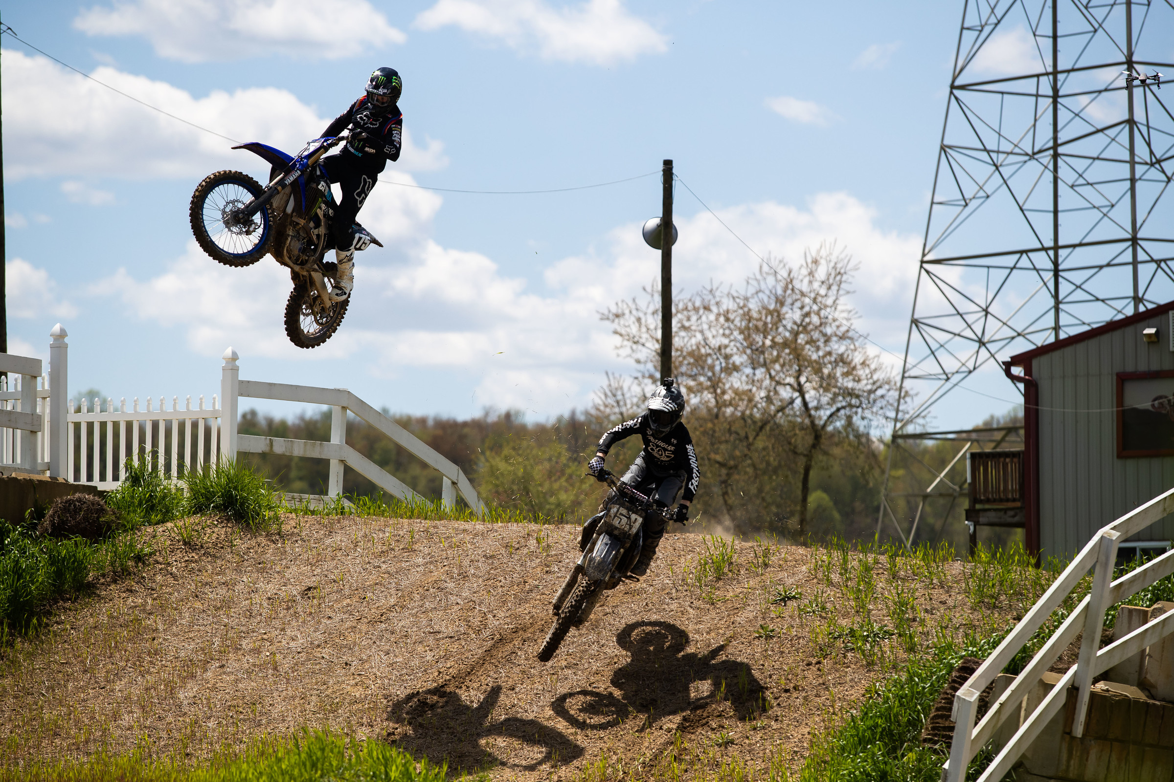 We were just riding around and looking for some fun stuff to do. I noticed that you could probably step down pretty easily from where the landing of the big quad or triple or whatever you want to call that thing, and jump from that down into the gulley and then triple out. Kind of how [Eli] Tomac did in the national. That was fun to do, for sure. Looking at it and once I seen it kind of lined up, it was something I had to do. I love taking tracks apart and finding new jumps that weren’t maybe intended.