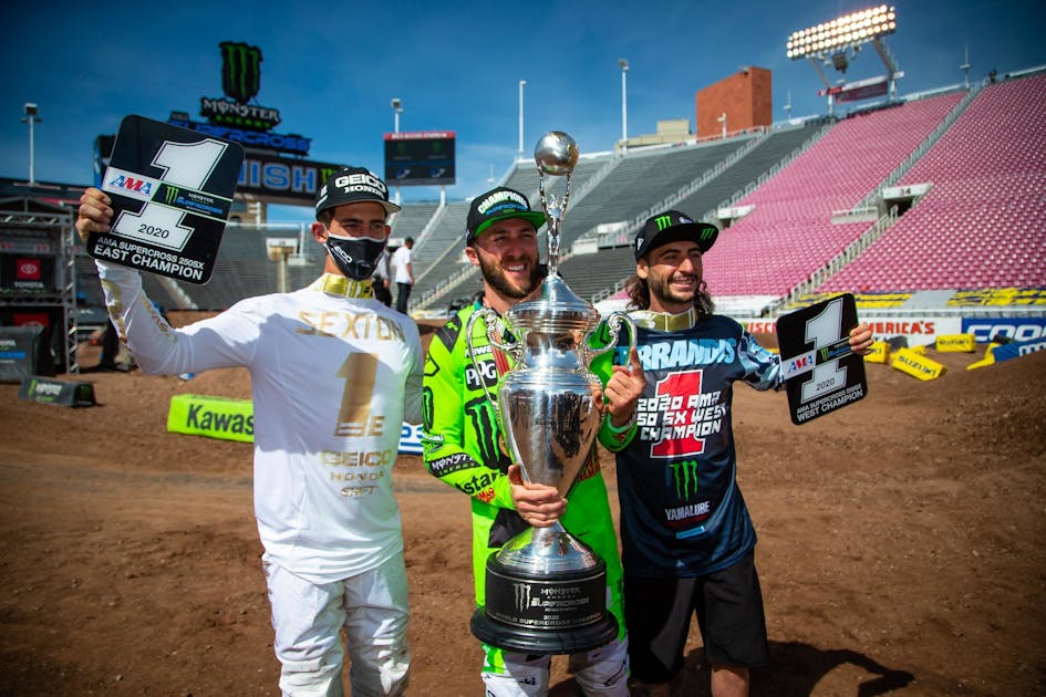 Eli Tomac wins his first career 450SX AMA Supercross title as both Chase Sexton (250SX East Region) and Dylan Ferrandis (250SX West Region) successfully defend their respective titles from last year.