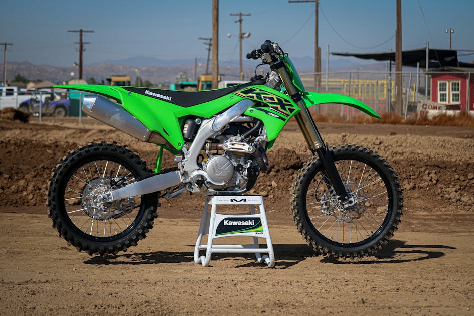 Kris Keefer saddles up on the new 2021 Kawasaki KX450 at State Fair MX Park in Perris, California. The new KX450 has a redesigned clutch for smoother power delivery on corner exits as well as coming stock with Renthal Fatbar 839's to offer more flex under load and chatter.