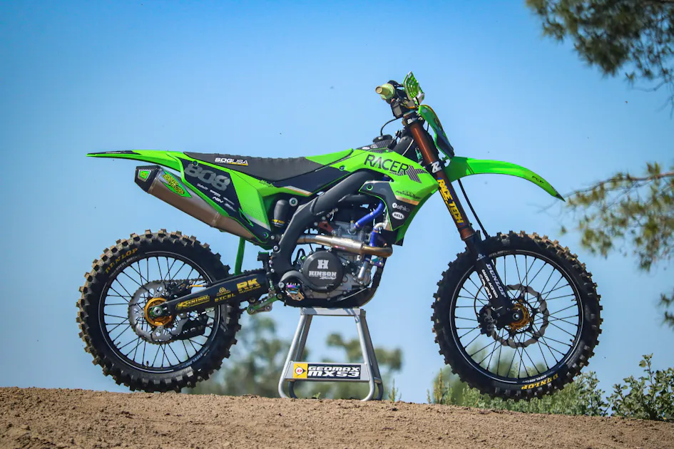 Trent Lopez is the digital sales associate here at Racer X, and when he’s not working, you can find him at the local motocross track ripping laps. Not all Garage Builds are the same—they’re part of each individual’s riding style, taste, pocketbook size, etc. For Trent’s 2020 Kawasaki KX450, he was looking to heavily customize the green machine, but rather than add a bunch of performance hop-up parts he felt he didn’t need, he wanted to personalize it to stand out at the track. From the looks of this build, he succeeded.