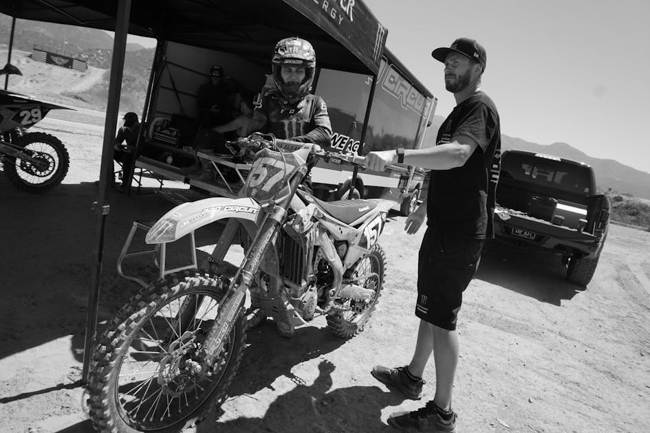 On what was an almost impossibly bright and blinding Tuesday morning and with the sound of motocross bikes of all shapes, sizes, displacements, and configurations making the entire scene pulse and reverberate, a shirtless Darian Sanayei sat in a black director’s chair and quietly watched on as Monster Energy/Pro Circuit Kawasaki mechanic Oliver Stone methodically went over the #157 Kawasaki KX250. The startup of the 2020 Lucas Oil AMA Pro Motocross Championship was a mere few weekdays away and Darian Sanayei, keeping a close eye on everything before him out at Fox Raceway at Pala in smoldering hot and dusty Pala, California, had gotten his big break. This forthcoming Saturday afternoon over in faraway Hurricane Mills, Tennessee, Sanayei, a refugee from the FIM Motocross World Championship, will take his place behind the starting gate as a member of Mitch Payton’s omnipotent quarter-liter outfit.