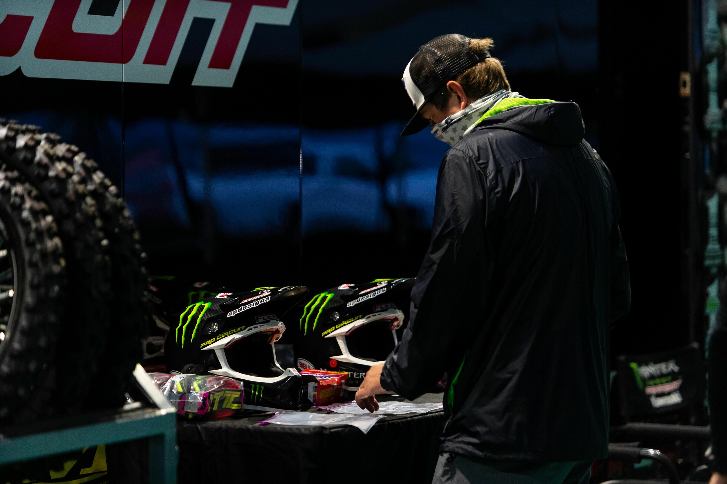 Chase Sexton scored his first 450 overall podium on Friday. This is his home track, so much so that he went back to his native Illinois to hang out on the Saturday off-day (he hails from a little over two hours from the track). Sexton is back with some wind in his sails, and also some extra help in his corner, as none other than James Stewart is here today to lend Sexton some coaching and assistance.