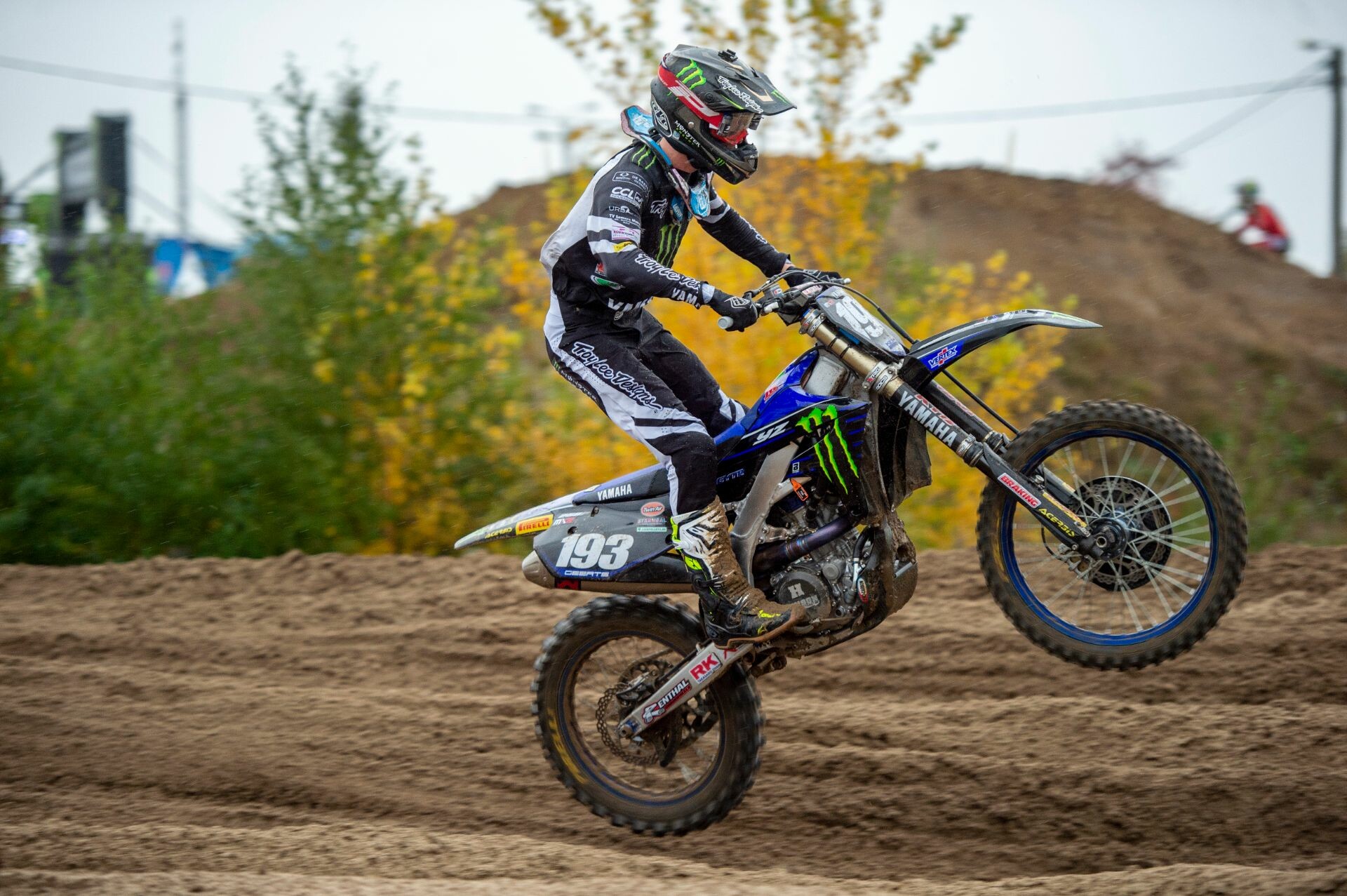 The hardest working rider at Lommel on Wednesday was arguably Jago Geerts’ teammate Ben Watson. The Brit scored a second podium finish in a row for the first time in his career with a personal best result of second overall. He managed it despite lackluster starts and needing to recover ground from the depths of the top ten on both occasions. Watson’s attacking style was excellent to watch. At his best he was passing Van de Moosdijk for second position at the end of the second moto with a long, glorious line around the left-handed sweeper. At his worst he came close to a major ‘ejection’ through the rutty waves section late in the same race; it was a part of the track he was barreling through unlike any other rider in the class.
