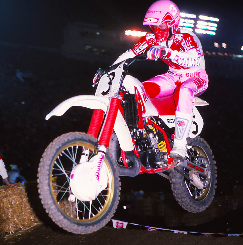 The Golden Boy raced Yamaha throughout almost his entire AMA career, winning six AMA Pro Motocross Championships—still the record for Yamaha and second only to Ricky Carmichael overall. But it wasn't golden gear that Broc is most famous for, but rather the pink JT Racing gear he debuted at the November 3, 1984, Los Angeles SX, which was held that late because the LA Coliseum had been occupied over the last two years for the preparation and then hosting of the 1984 Summer Olympic Games. Yamaha was in the process of switching colors from yellow and black in '84 to white and red for 1985, and because the race was so late in the calendar, Glover raced an '85 production YZ250.
