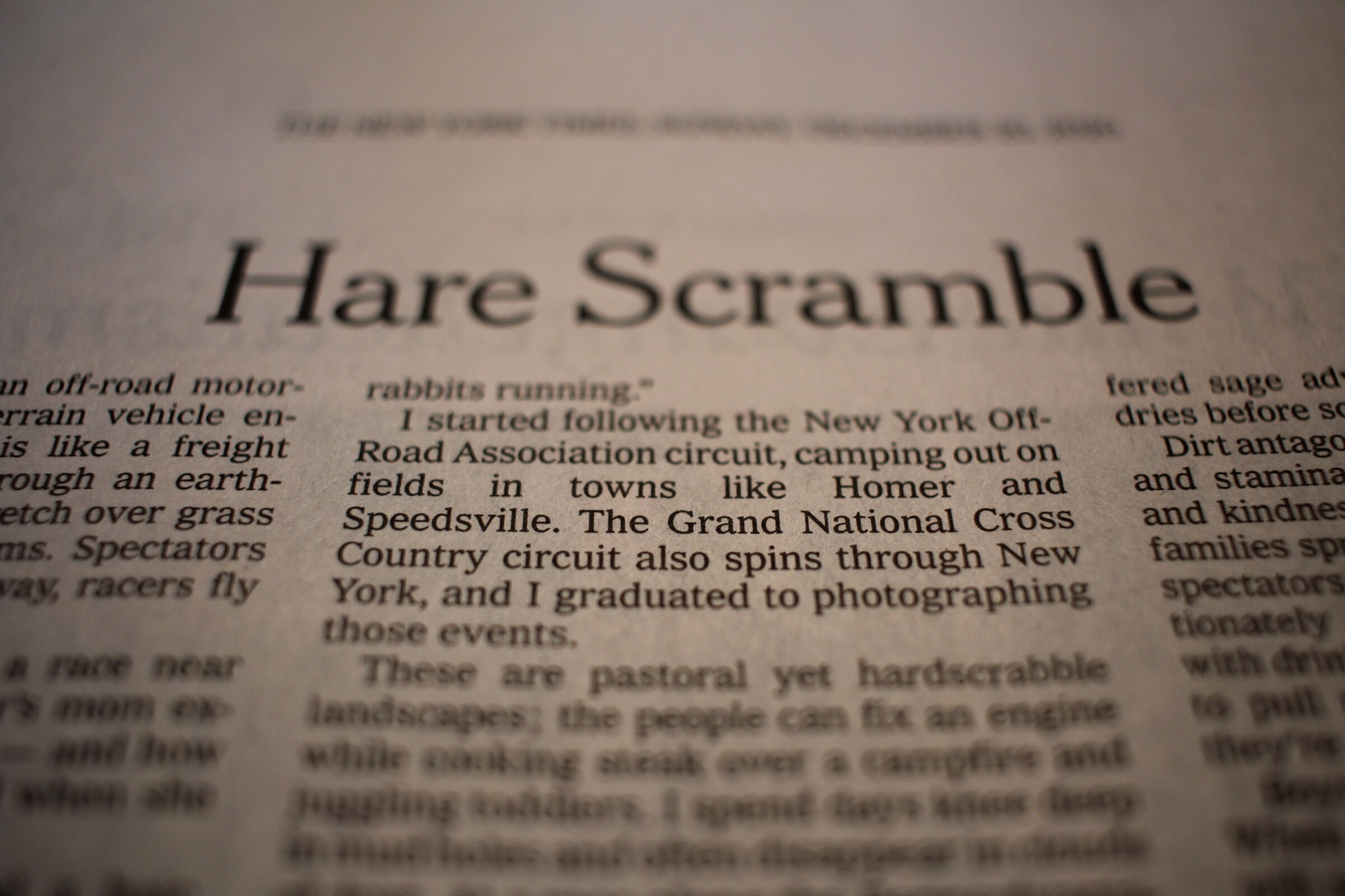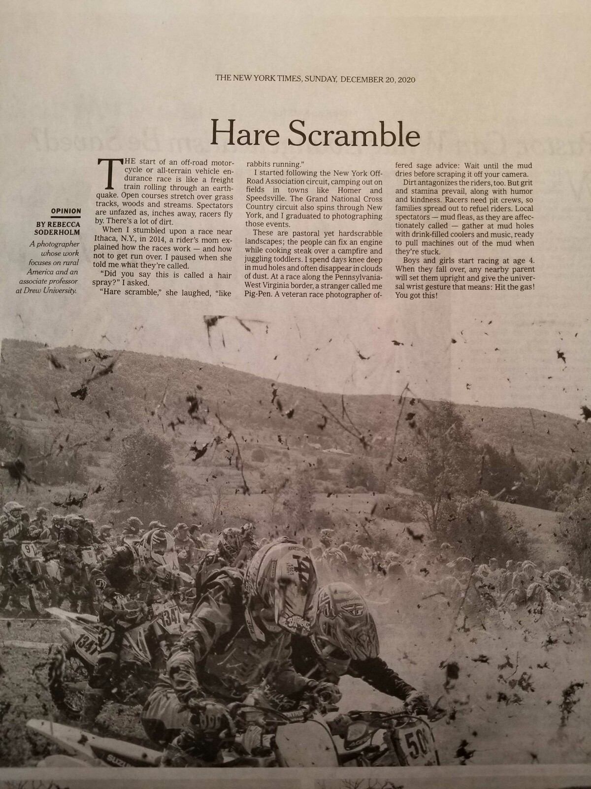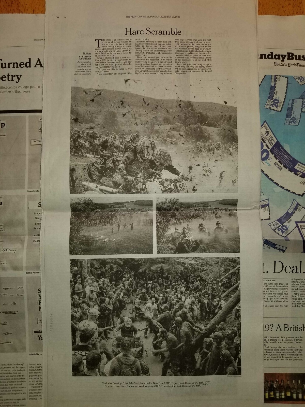 Also, here’s a few pictures of the print issue of New York Times from last Sunday, December 20, 2020. The Sunday New York Times features an excellent photo essay by photographer Rebecca Soderholm of the AMA Grand National Cross Country Series, as well as the New York Off-Road Association circuit. Check out "Hare Scramble: A Photographer Goes Knee Deep in the Mud."