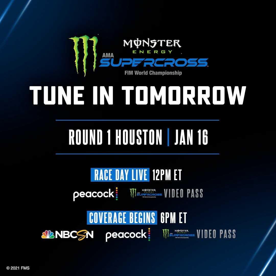 The first round of 2021 Monster Energy AMA Supercross will take place on Saturday, January 16, at NRG Stadium in Houston, Texas.