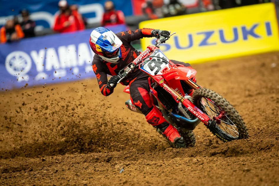 Ken Roczen: Really good. It really feels like it’s been forever since I’ve raced, since I didn’t ride outdoors. This race though was the most normal race. Salt Lake did not feel normal whatsoever but coming here and having some fans in the stadium, it just had a little bit of the sense of the good old days, let’s call them that way, even though we’re not quite completely there yet. But I just had fun out there. It felt like we were in the middle of the season, to be honest. I think there was a lot of madness going on behind us. It was nice to stay away from that. Like I said, I just changed my complete outlook on the whole racing side of things, so I really just tried to race today and enjoy myself. That’s exactly what I’ve done. So, I’m really over the moon with tonight.