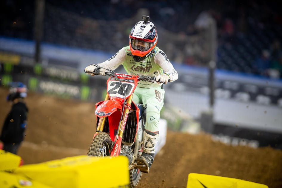“I’m not going to lie, I was a little nervous at the beginning of the day. A new team, new bike, new year, it was just the typical jitters. We went to the main event and I finally got the jitters out. I didn’t get the best start. I think I looked at the gate just a little too quick when the 30-second card went sideways. It’s about five to seven seconds typically when it drops. I was probably staring at that thing for seven seconds. I made a few mistakes in the beginning and got around some guys, but just kind of gapped myself. I knew that it was going to be a long race, and it was. We did 28 laps. Third and fourth were right there. I did everything I could to try to get them. I was sitting in fifth and I felt like I was just kind of riding by myself in my own little zone, but I stayed charging. Adam Cianciarulo was dangling the carrot in front of me and it just kept me motivated.