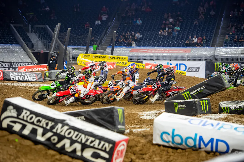 In the 250SX class, Australian Jett Lawrence sprinted out to an early lead and never looked back to claim his first career victory. Further back there was some drama between Austin Forkner and R.J. Hampshire costing them both a shot at the podium. Colt Nichols charged past championship-leading teammate Christian Craig to finish second on the night.