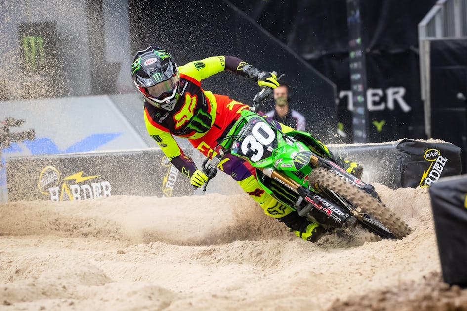 Jett Lawrence’s list of things to do in 2021 got a little smaller on Tuesday night when he absolutely dominated the 250SX main event. The Honda HRC rider was brilliant, leading every single lap of the race before taking the checkers nearly eight seconds ahead of runner-up Colt Nichols. He even won his heat race! To celebrate he barked like a dog during his post-win interview on television, which no doubt caused Justin Cooper to raise an eyebrow in muted amusement. If Lawrence follows up his first win with another at H3, it could be a bad sign for the competition. –Hansel