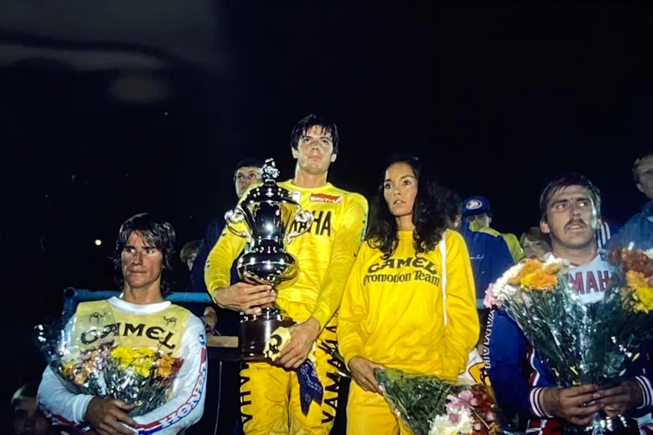 French photo legend Pat Boulland shot these photos of Bell at the '82 Amsterdam Supercross. In the photo on the right, he is flanked by Jim Gibson (left) and Hakan Carlqvist (right) on the podium.
