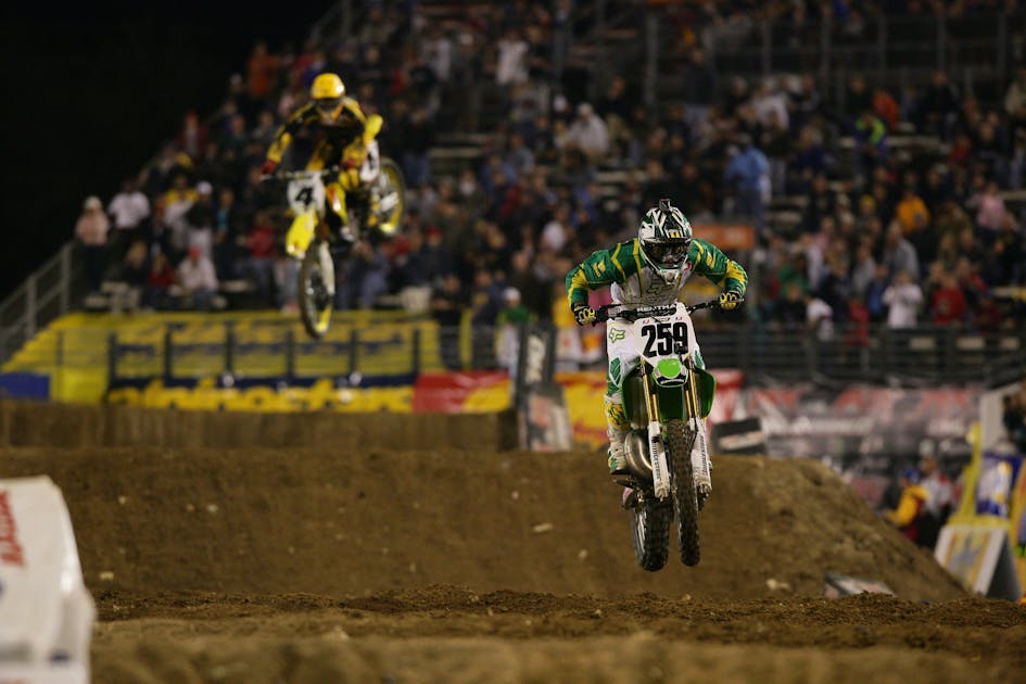 We covered Anaheim 1 2005 earlier this year. That was the first race with both Ricky and James on the starting gate, but it was a mudder so it didn’t prove anything. The next weekend Stewart broke his arm in practice. The fans/industry/media has waited a decade to finally see RC and Stew race each other, and now we’d have to wait six-to-eight weeks for James’ arm to heal.