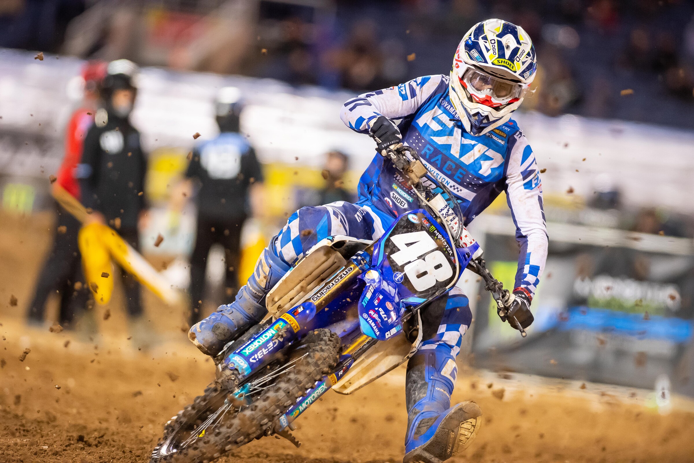 The 250SX West Region season opener saw an unfortunately large number of injuries and rough evenings stack up for many riders. Through all of the chaos, Monster Energy/Pro Circuit Kawasaki’s Cameron McAdoo and ClubMX Yamaha’s Garrett Marchbanks were able to land on the podium on the night. McAdoo did have one of the strangest circumstances happen to him in what turned out to be the first start of the main event when he collided with a medical worker attempting to cross the track, but he regrouped for second on the night. Marchbanks was making his debut with the ClubMX team after being left without a factory ride for 2021 and the podium was monumental in many ways.