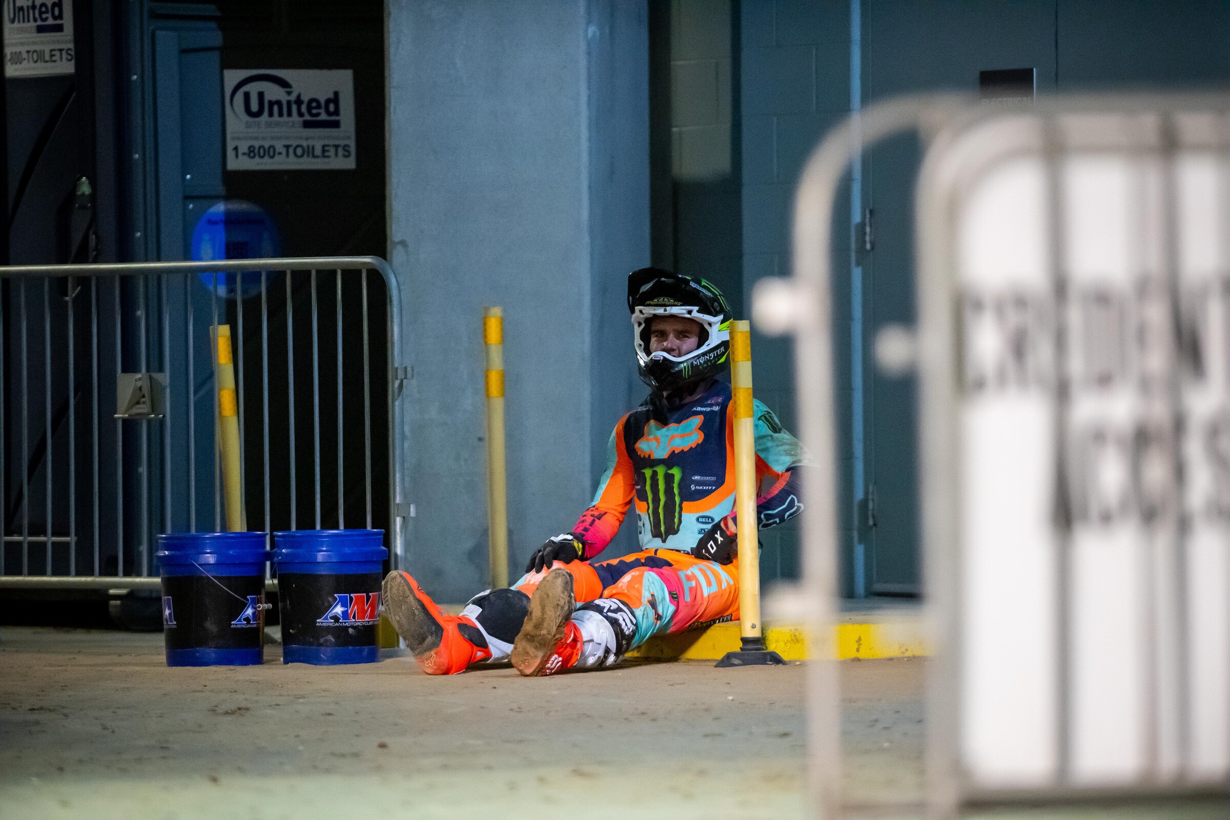 I remember the whole day right up until the parade lap of the main event. After that I don’t remember anything until about 3 a.m. Sunday morning. I literally woke up, did a body scan, noticed my whole body was hurting and then started to realize something bad must’ve happened. Also, I think [Cameron] McAdoo's footpeg left a pretty good gash in my left hamstring.
