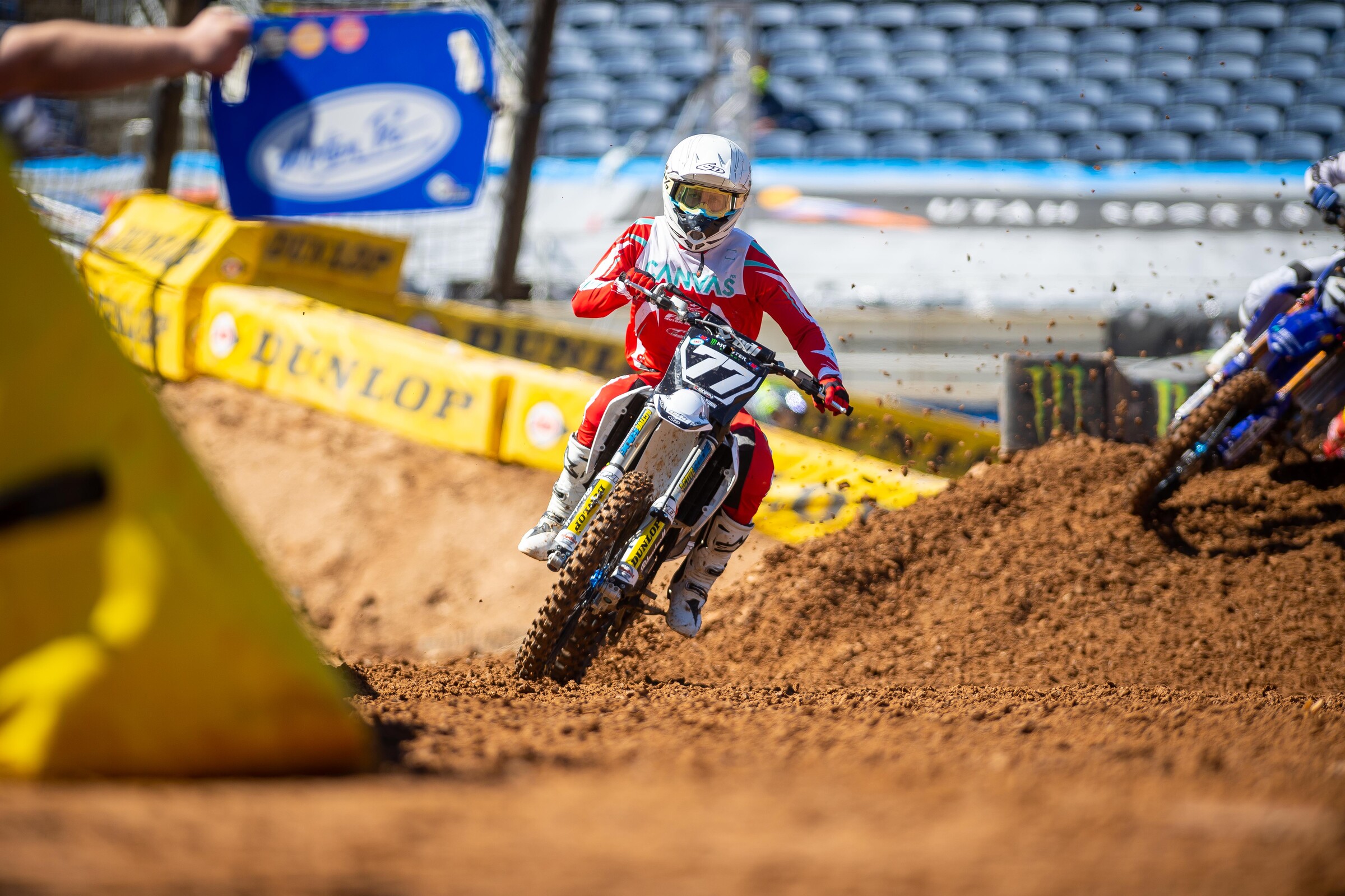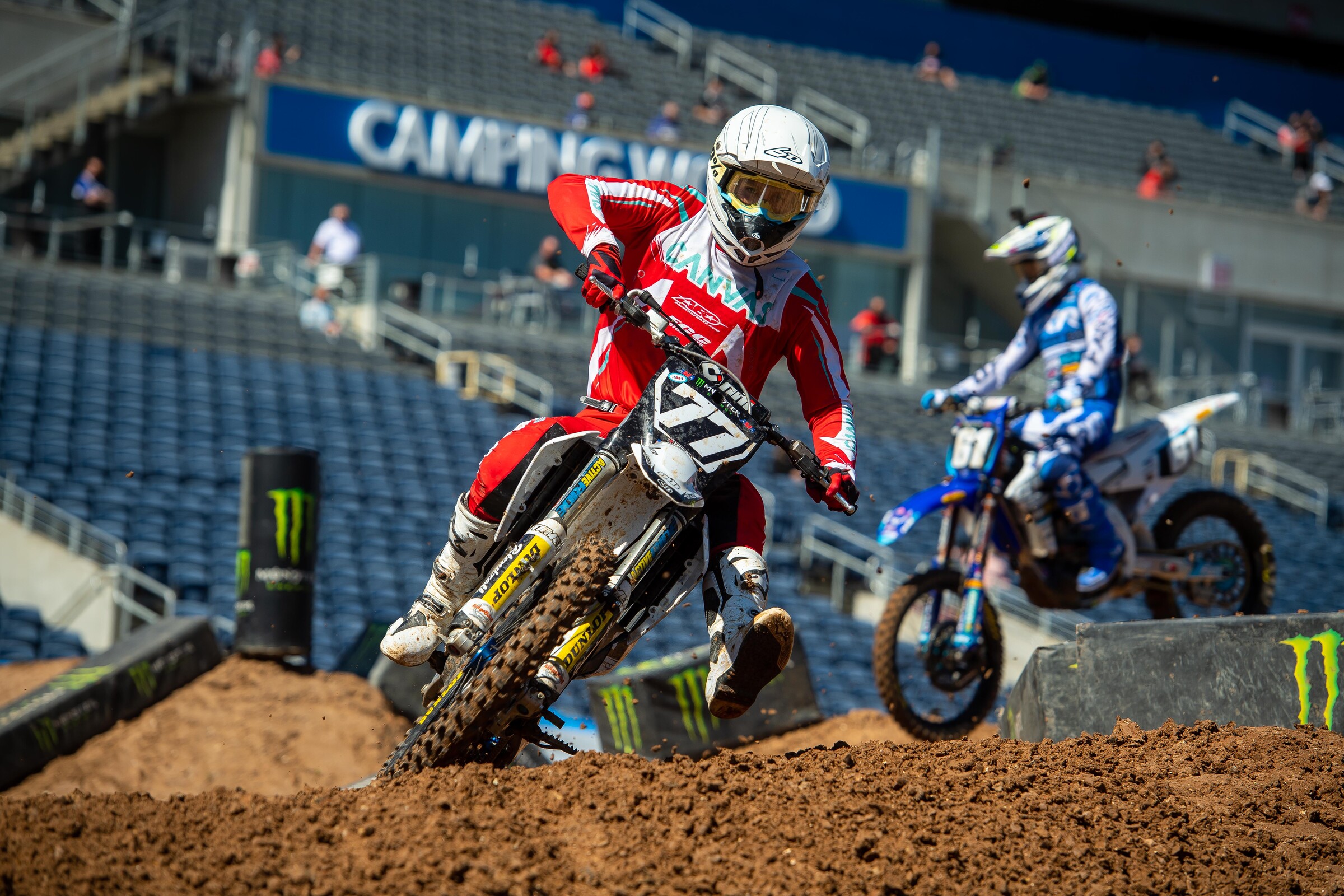 Yeah, it was actually going great considering my riding and training that I had coming in. I had actually only rode for about two weeks coming into Orlando, so I didn’t know what to expect and I didn’t know where my speed would be. A lot of times when I take that much time off I lose some speed and stuff. I qualified third or fourth and had a pretty good heat race—made a mistake in the heat race but my speed was good. I didn’t get a very good start on the first main event start, but after the red flag [restart] I came out pretty good. I was running second and I was feeling good—right where I wanted to be. Obviously I made a mistake going into the whoops, so things didn’t go as planned. Up until that point everything went pretty good.