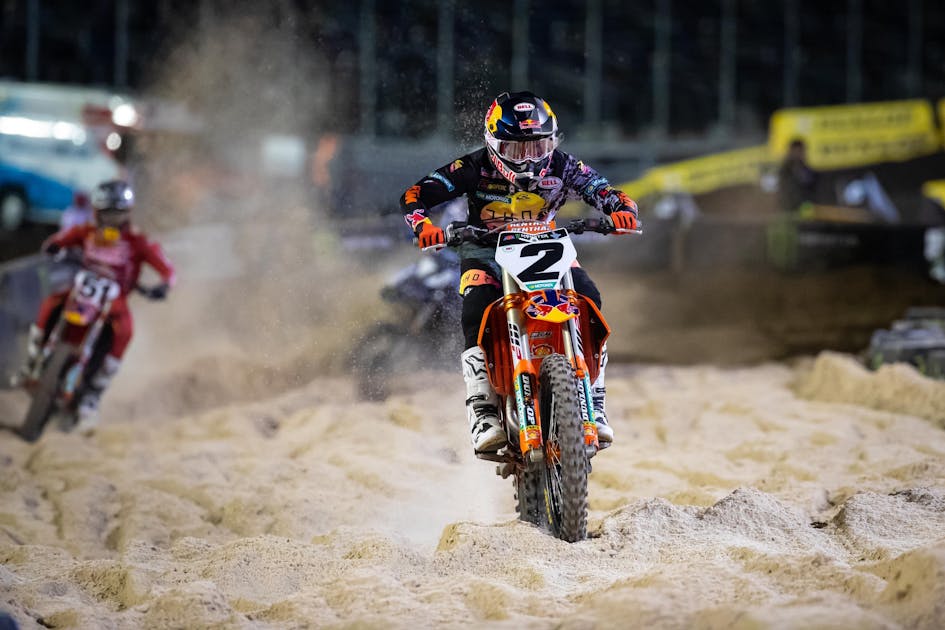 Red Bull KTM Factory Racing’s Cooper Webb put together a solid charge late in the Daytona Supercross to capitalize on a mistake from Aaron Plessinger and snag second place behind Eli Tomac. But Webb isn’t being talked about for his charge, but rather the interesting championship dynamic now taking shape between himself and championship leader Ken Roczen. Roczen was not too happy with Webb running him to the Tuff Blox in the second corner of the race, and the German voiced his displeasure on the podium.