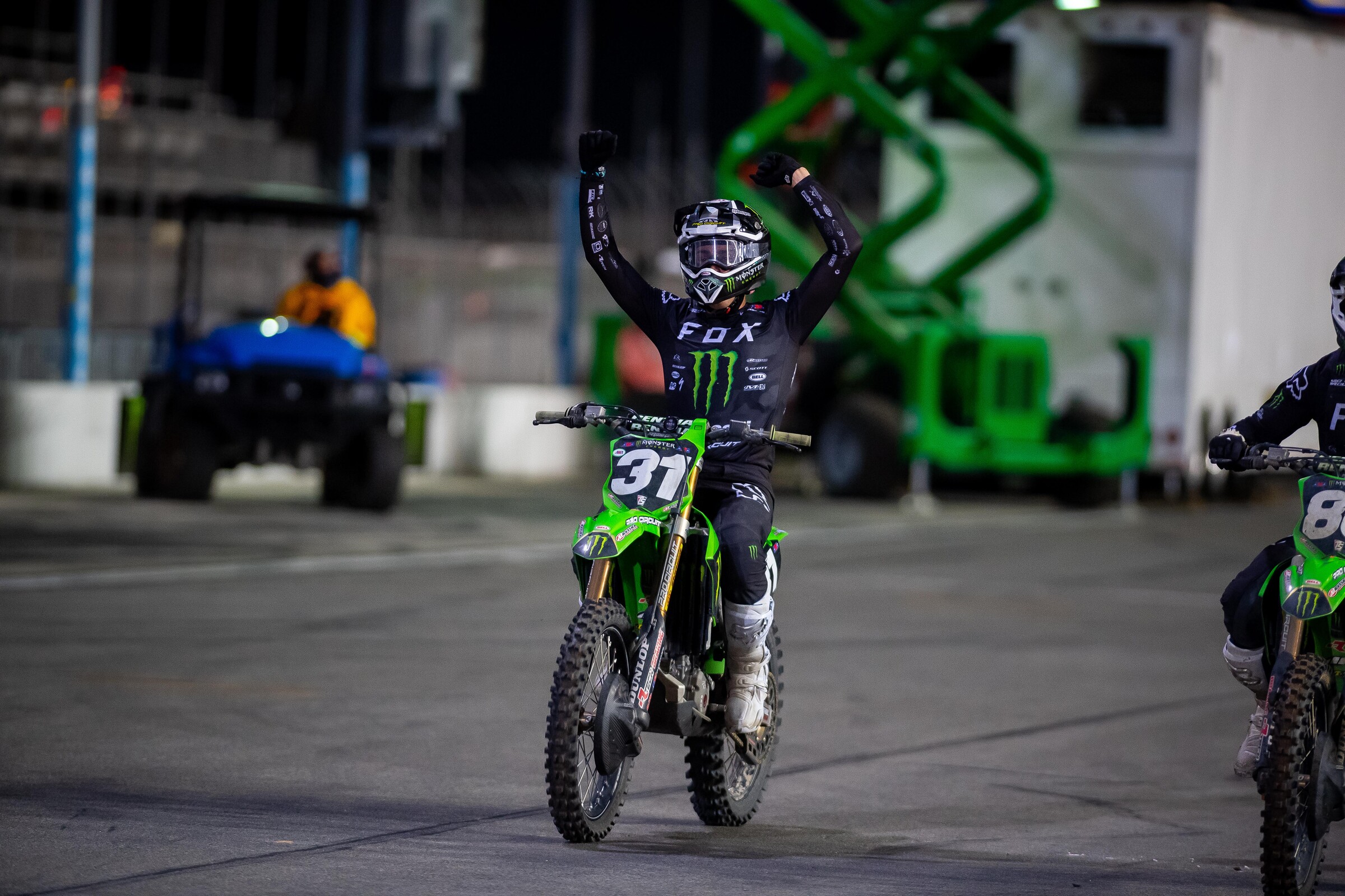 Chase Sexton came back, went huge off the wall jump, ate his handlebar (literally!), and then had a calm night in the main event. Three of these things his coach James Stewart would be proud of. One of them, he would not.