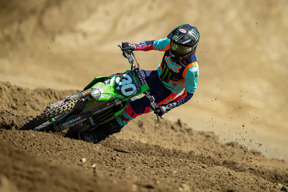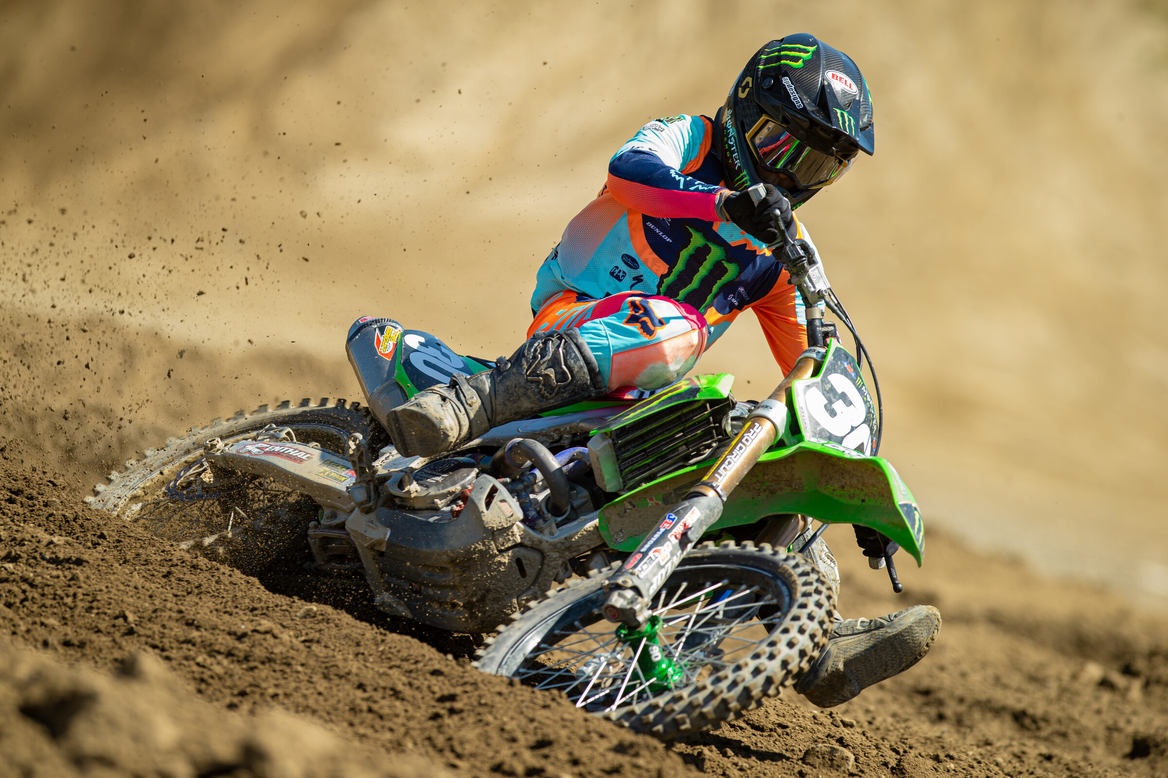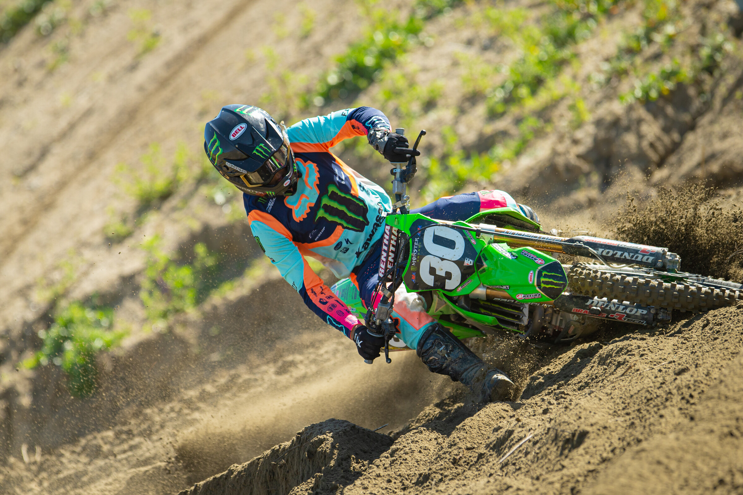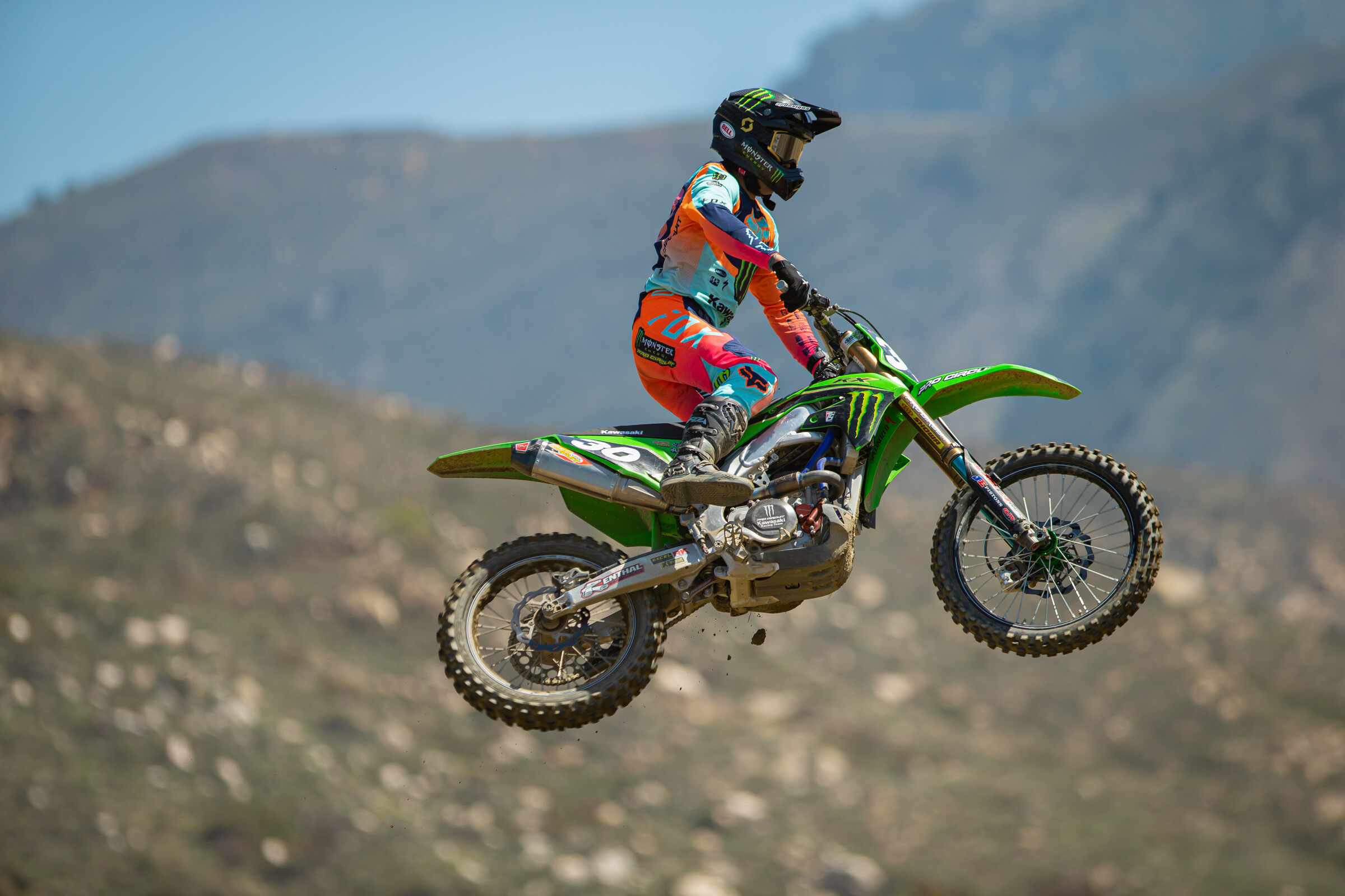 Following the shutdown of the GEICO Honda team in October 2020, Jo Shimoda was left without a ride for 2021. He eventually joined the Monster Energy/Pro Circuit Kawasaki team in December 2020 and would set his eyes on his second full season of racing pro. Through the first seven rounds of the 2021 Monster Energy AMA Supercross 250SX East Region Championship, the 18-year-old sits third in the standings. He earned the first two supercross podium finishes of his career and he sits 28 points behind veterans Colt Nichols and Christian Craig. During the break in the 250SX East Region championship, Shimoda and the Monster Energy/Pro Circuit Kawasaki team have continued to put in work. We caught up with Shimoda during a day of training at Fox Raceway at Pala to get his thoughts on his season so far, working with Mitch Payton and the team, his goals for the remainder of the supercross season, and more. And check out some raw clips of Shimoda putting in practice laps as well.