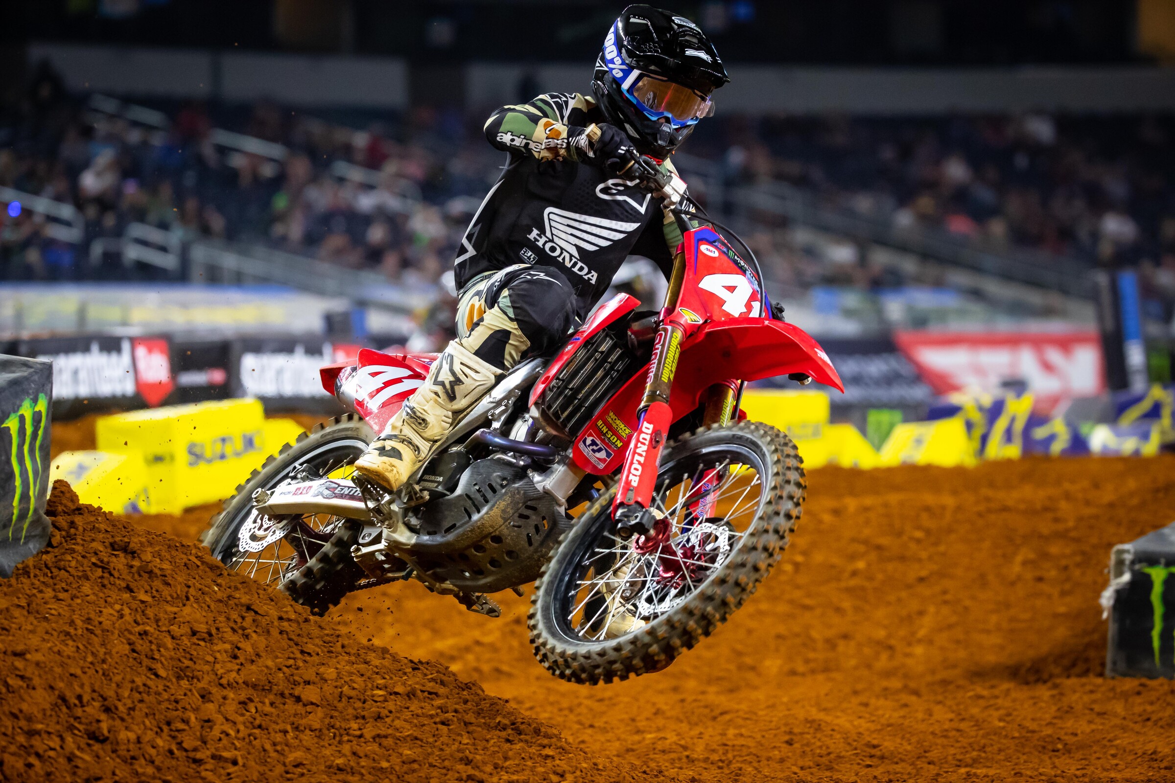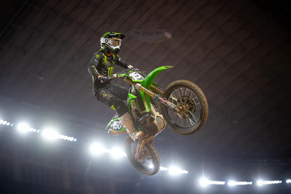 Hunter Lawrence: I had a bittersweet ending here in Dallas. It was a pretty good weekend, getting second in the heat race, but a bit of an unfortunate ending in the main. I was riding well in third, pushing and pushing, but I kept getting caught up with lappers. I felt like I was catching the guys just inch by inch, and I pushed myself but made a mistake. I landed on the far righthand side of the berm, where they built a little lip into it. It was a pretty harsh landing, as I’m sure the videos show, with me ending up in the net. I’m so thankful that the nets were there to save me and the bike so we could finish and bring it home in fifth. It was good considering what it could have been with the crash. Coming into Arlington, we were in fourth and 16 points down, but now we’re only six points behind. Having the red plate and then passing it on is a bit of a bummer, but we’re still in it. I’m looking forward to two weeks off now to regroup and come back swinging in Atlanta. I can’t thank the team and everyone enough!