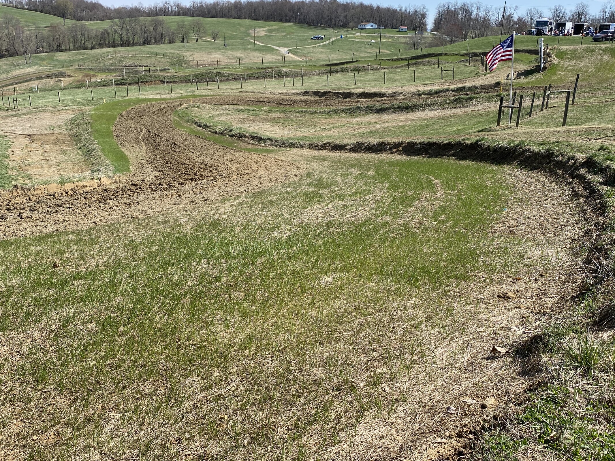 Last Saturday we had our Wake-Up High Point ride day and had a massive crowd turn out for the track in Mt. Morris, Pennsylvania, which was established back in September of 1976. The track was mostly grass, which was a real treat for everyone. But as the day wore on and hundreds and hundreds of bikes made lap after lap after lap, well, it got brutally rough. Here is a little comparison to show you how smooth it started and how gnarly the track got by the end of five hours of nearly constant traffic…