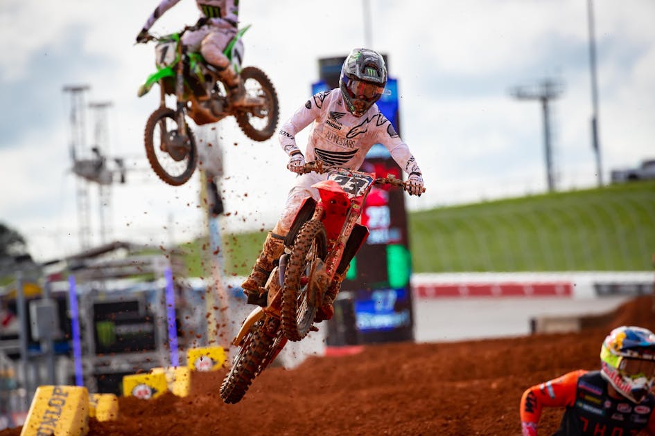 It almost felt a little bit like déjà vu at Atlanta Motor Speedway on Saturday. As the white flag was about to wave, Honda HRC’s Chase Sexton was in a position to win his first career 450SX main event as he tried to hold off a late charge from Eli Tomac. Unfortunately for him, a strange sequence of events occurred that ultimately cost him a shot at the victory.
