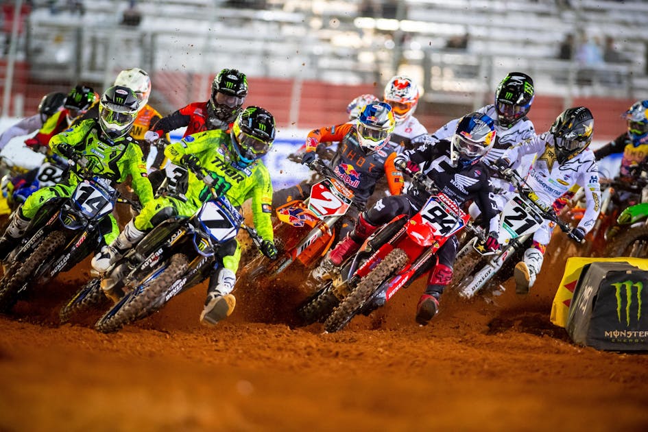 The whoops were the tell on this night. They were huge, and Webb described them as the hardest set of supercross whoops he’d ever hit. But he was handling them with ease, until a late crash put him on the ground. Roczen got up still holding a solid lead, but that changed everything, because he stopped skimming the whoops after that and the jump line wasn’t working. Webb, known for jumping, blitzed to the end, started making up time in chunks, and then Roczen went way wide in a corner to take the lead. With the opening of Roczen’s crash, and his own late-race charge, Webb had defied the normal supercross race strategy, waiting until the final laps of the day to put in his best work and steal a win that was seemingly never in play for him in the first place.