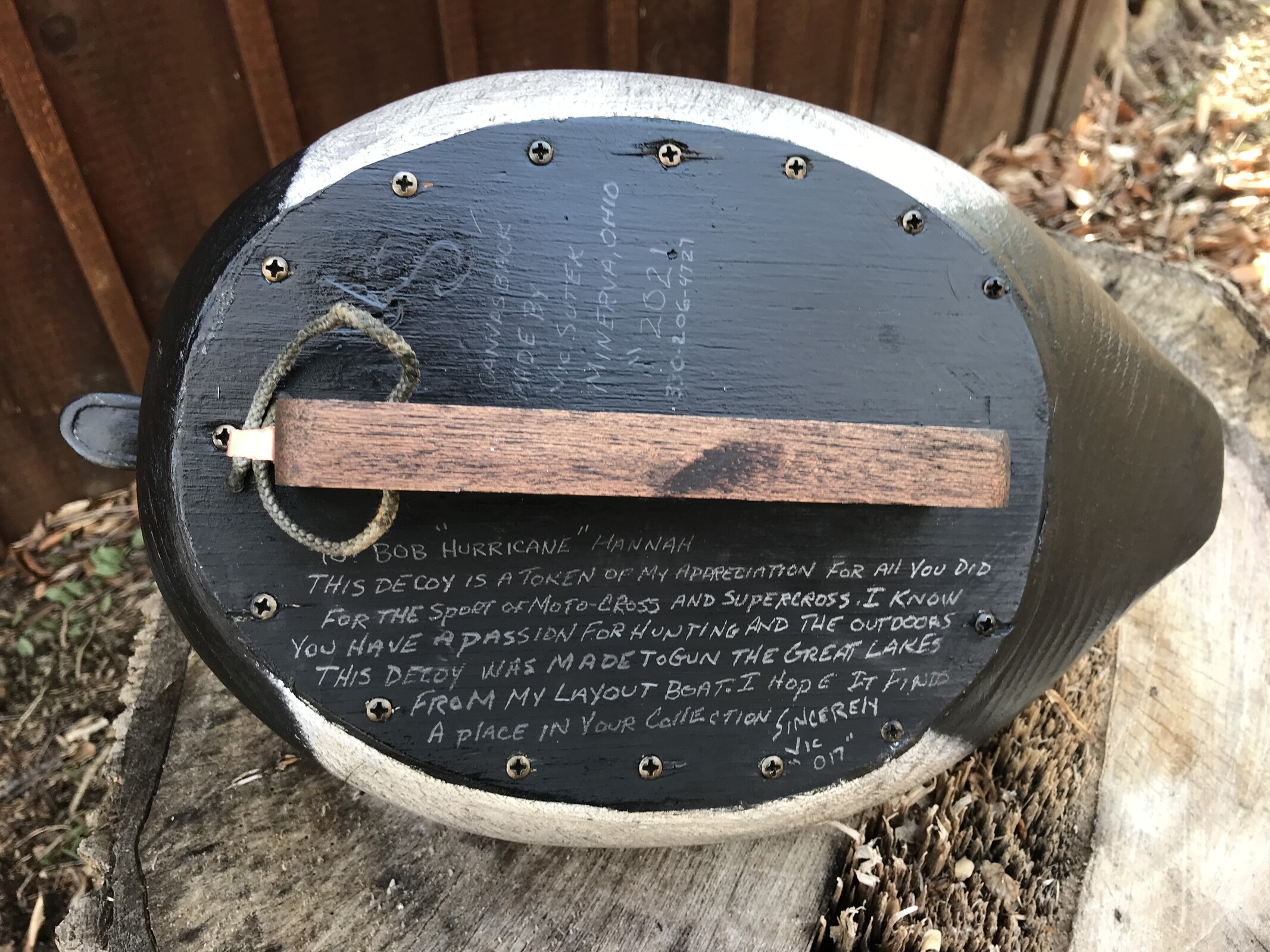 I thought you might get a kick out of this. I contacted Bob [Hannah] knowing he collects decoys. I am a very avid duck hunter and decoy maker. (My two passions are duck hunting and MX, thus the Moto Duck.) He contacted me back and said he would love to have one of the hallowed cedar hunting decoys. It was a lot of fun to make it in the Duck Shack while watching old footage of him racing. Just a little payback for all the good memories watching him at Mid-Ohio, Pontiac, Gatorback, Daytona, etc... Can’t wait for the High Point National this year!