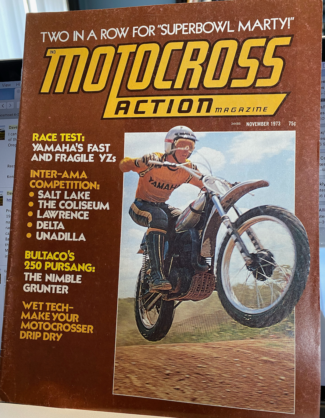 Earlier this week, Racer X publisher Scott Wallenberg sent me a look at a film called Motocross on the nonprofit Texas Archive of the Moving Image. It was coverage of the 1971 Trans-AMA race at Broken Arrow, Oklahoma, and it featured American motocross at the beginning, when the Europeans were dominant, tracks were almost all natural, and the whole setting rather quaint. And it’s amazing! It’s narrated in part by the rider it focuses on, a privateer named Jack O’Leary from Austin, Texas, which makes sense when you realize at the end that this was a student film project from three kids at the University of Texas in Austin. O’Leary is a very good rider, though largely unknown because he was done racing professional motocross within two years. His high-water finish was a seventh in the 1973 Lake Whitney National in the 250cc class. O’Leary also did some test-riding for Motocross Action magazine, making the cover of the November 1973 issue while testing a brand-new Yamaha YZ. And the 14-minute film itself is amazing, especially once the race begins.