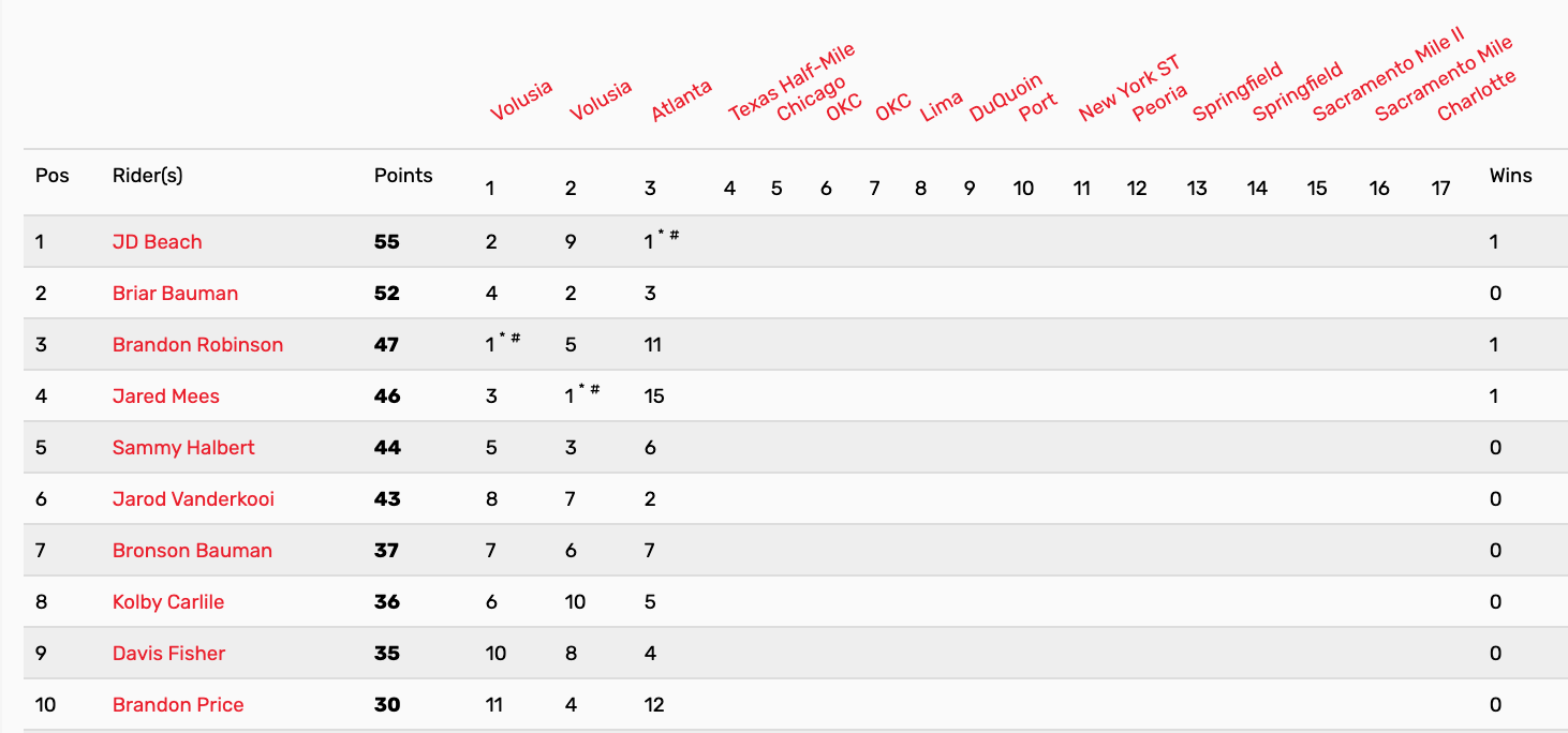 | 10 | Jesse Ansley | Myakka City, FL | 137 |