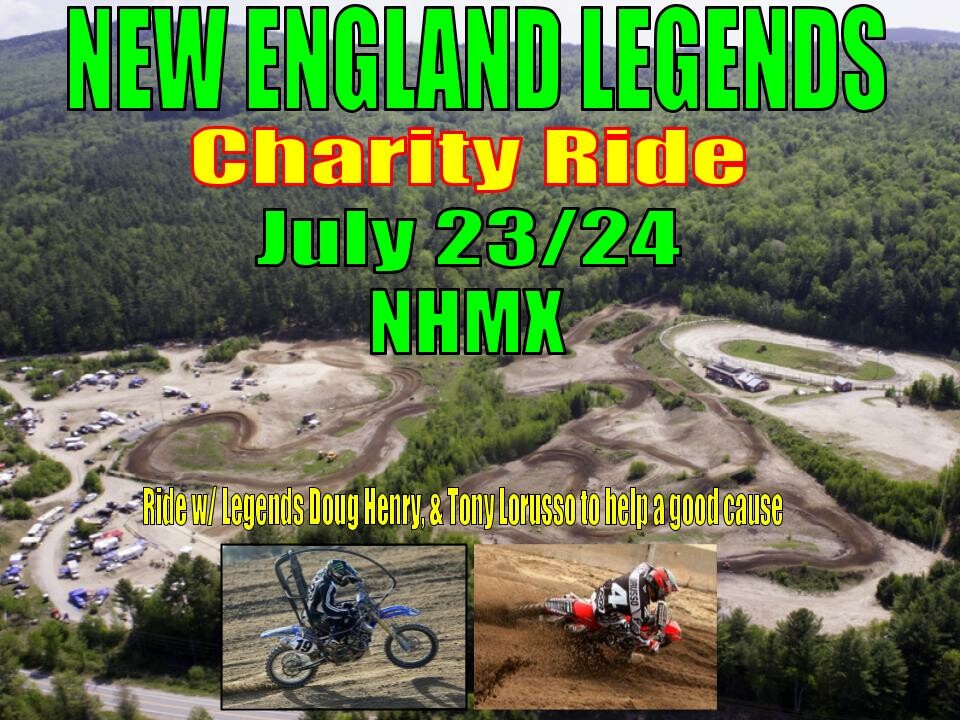 With the Southwick National date now confirmed for July 10, the date for the New England Legends charity ride is Friday and Saturday, July 23-24, at NHMX. The ride will be led by Doug Henry and Tony Lorusso with the proceeds going to a good cause: New England Riders helping New England riders. The event is limited to the first 50 riders per day, and cost is $100 per rider per day and includes riding (11 a.m. to 4p.m.), a special event T-shirt, pizza dinner, beer and soda, and a raffle ticket. They are also pulling together a silent auction of valuable memorabilia each day. Sign up at stimilon.com/registration and click on New England Legends Charity Ride. Open now, don't wait—this will sell out fast!