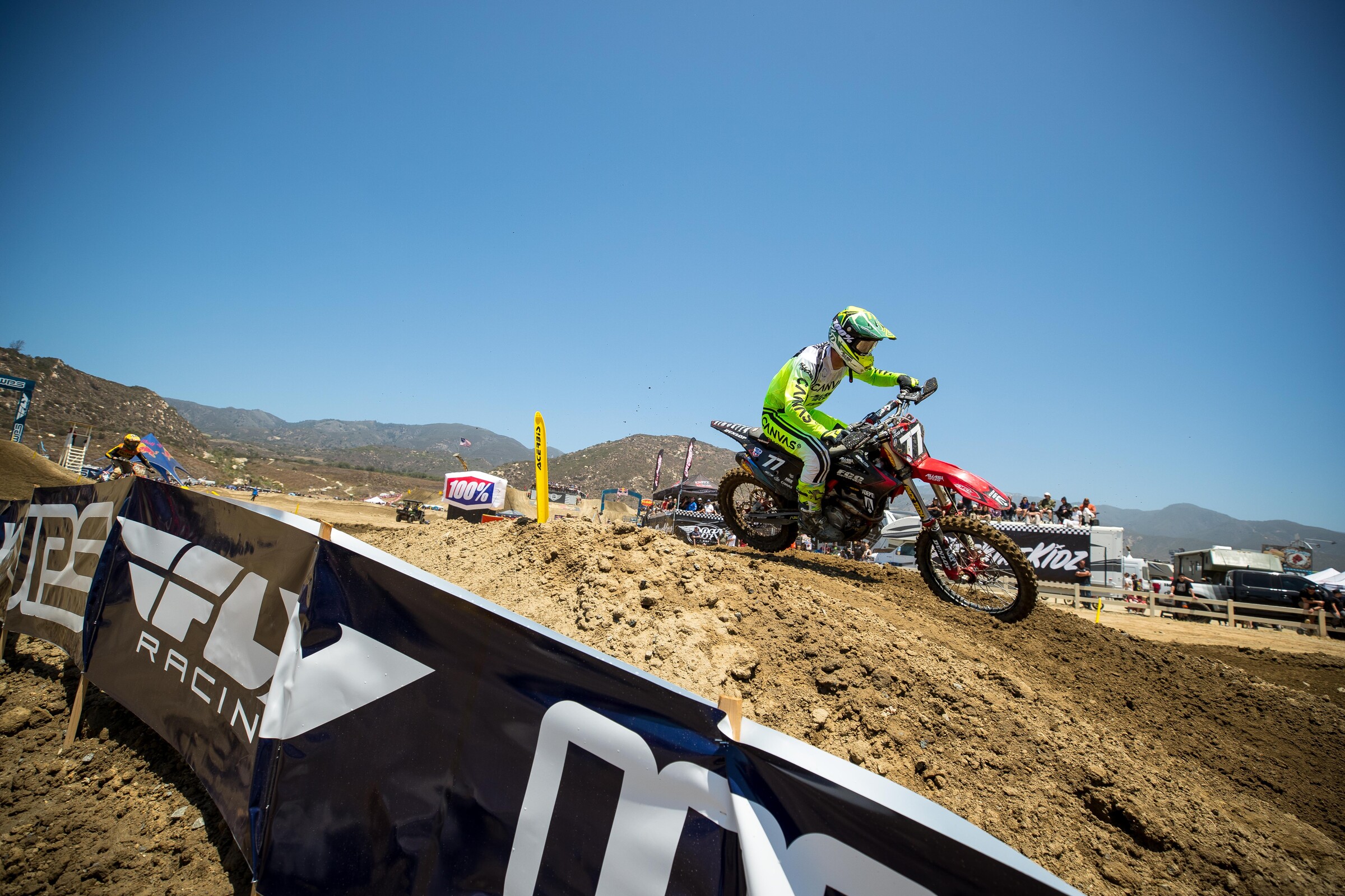 No, like Pala during the week, it hardly ever gets ruts on the faces [of jumps]. I mean it gets some kickers and stuff like that, but nothing like today. I’ve never seen this place like that, not even last year or previous years. Like they really watered it. I mean there was still standing water in the doubles before the finish in moto one. So, it is what it is, but they overdid it a little.