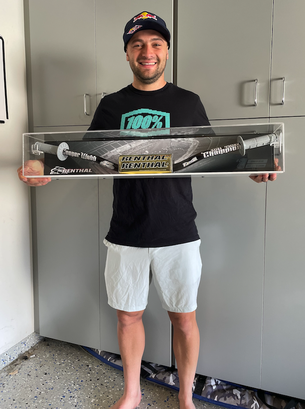 Renthal Commercial Director Rees Williams says “We work very closely with the staff at our sponsored race teams to help them with handlebar/grip/sprocket setup to get their riders as comfortable as possible so they can perform at their best. A rider’s handlebar setup is highly important and personal. This champ trophy allows us to connect and congratulate these riders, in a personal ‘Renthal way’ as well as honor iconic past Renthal Champions to show our appreciation for their commitment and success”.