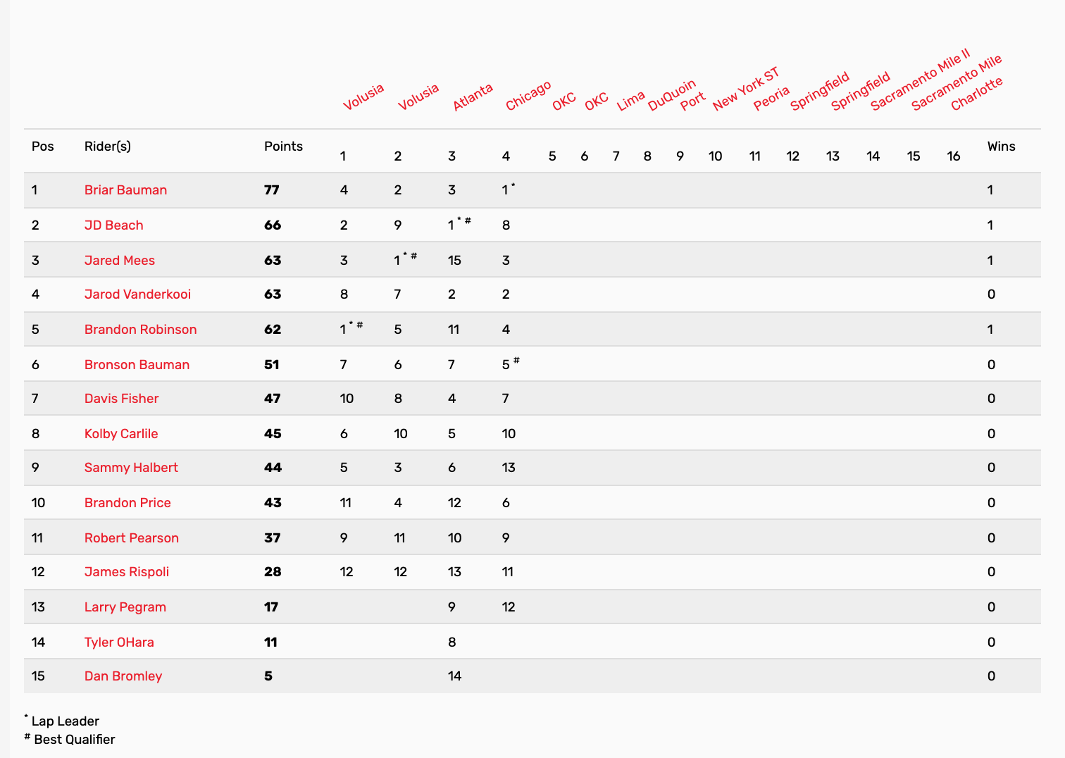 | 5 | Chase Sexton | La Moille, IL | 342 |