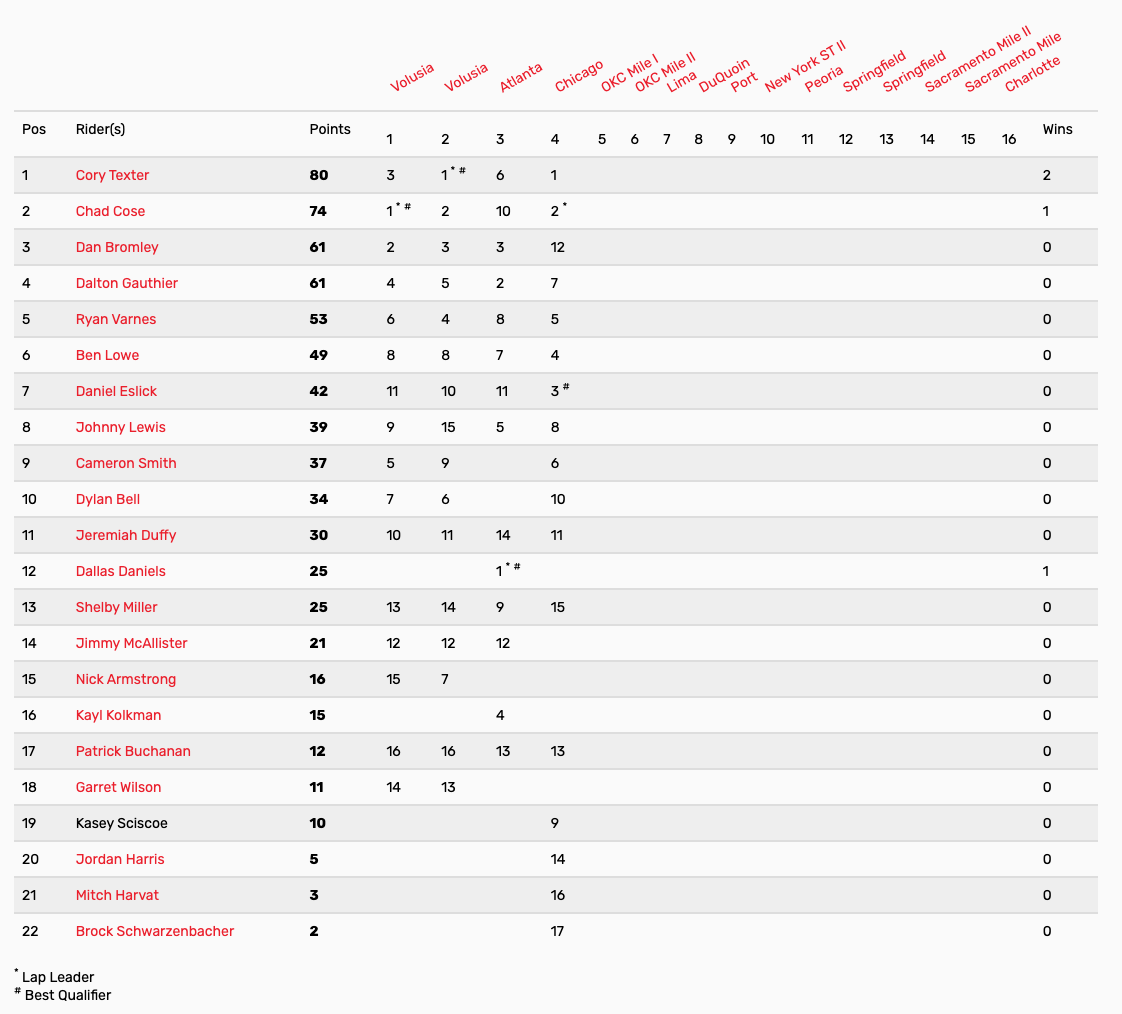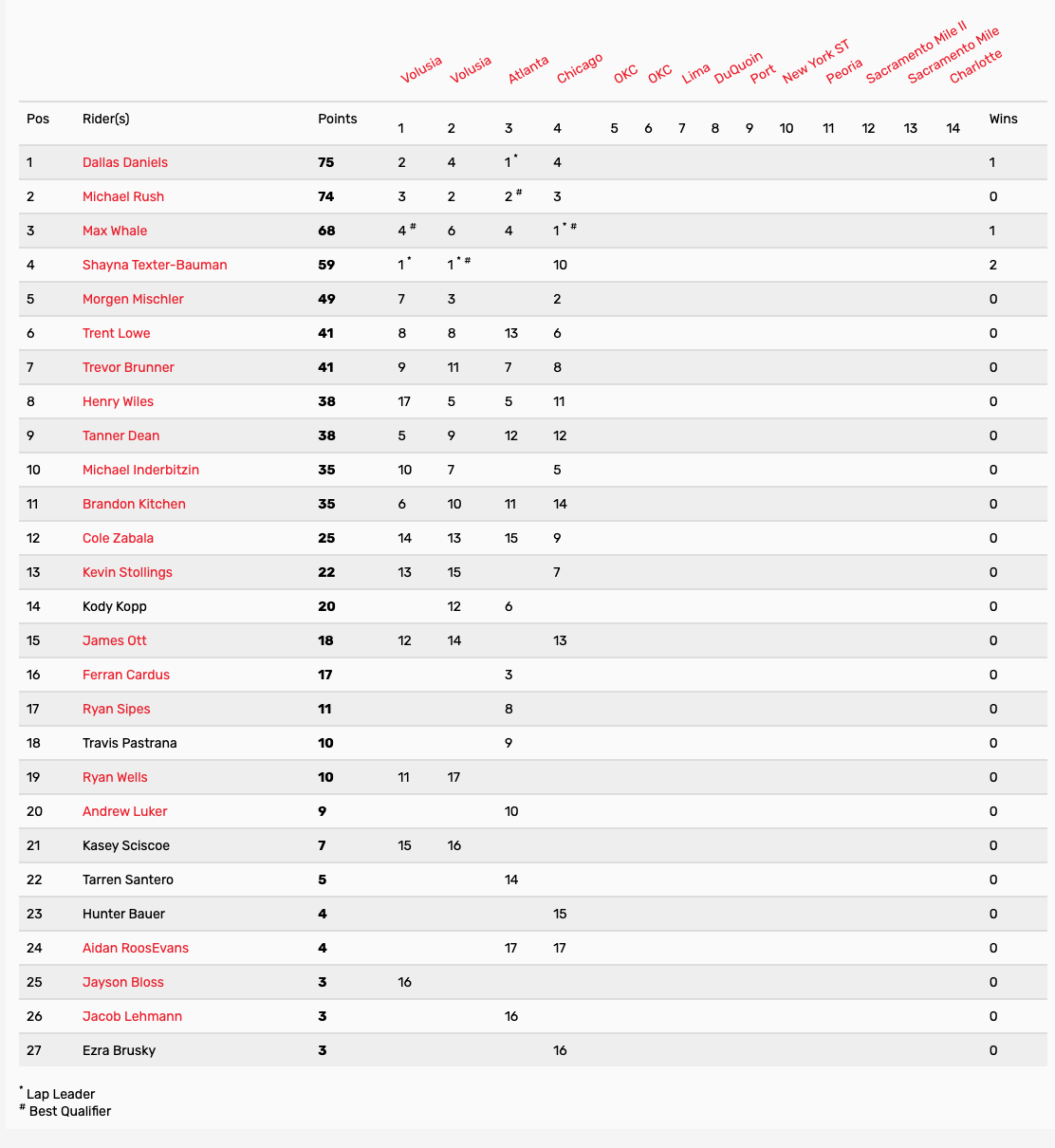 | 4 | Cooper Webb | Newport, NC | 358 |