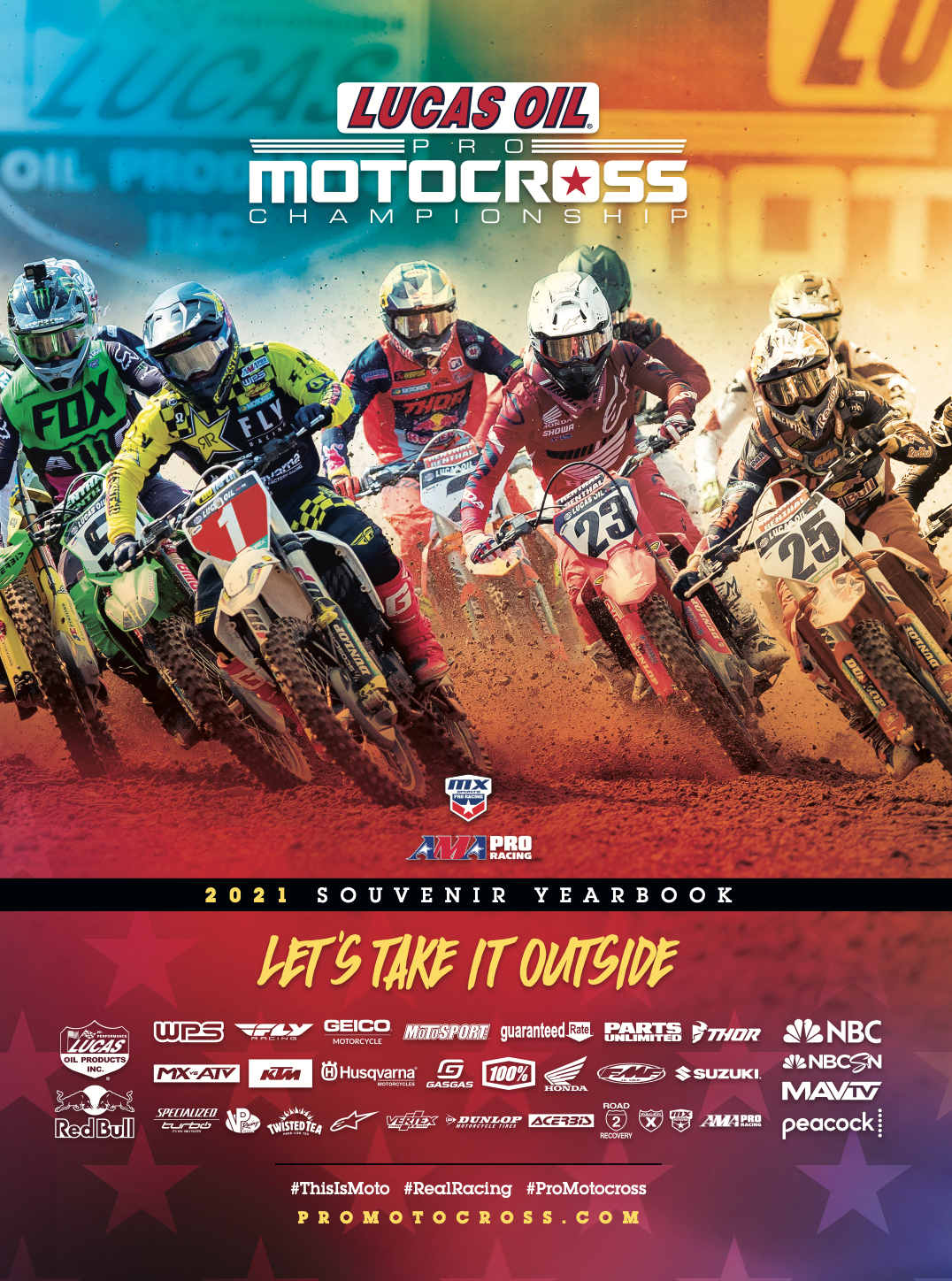 We thought we’d end the memory lane there in 2000 as we soon transitioned away from doing single event programs to one big yearbook for all 12 rounds of Lucas Oil Pro Motocross. You can find and buy that book at the track this weekend, being sold by local kids’ groups as well as at all of the major vendors. The 2021 program looks like this: