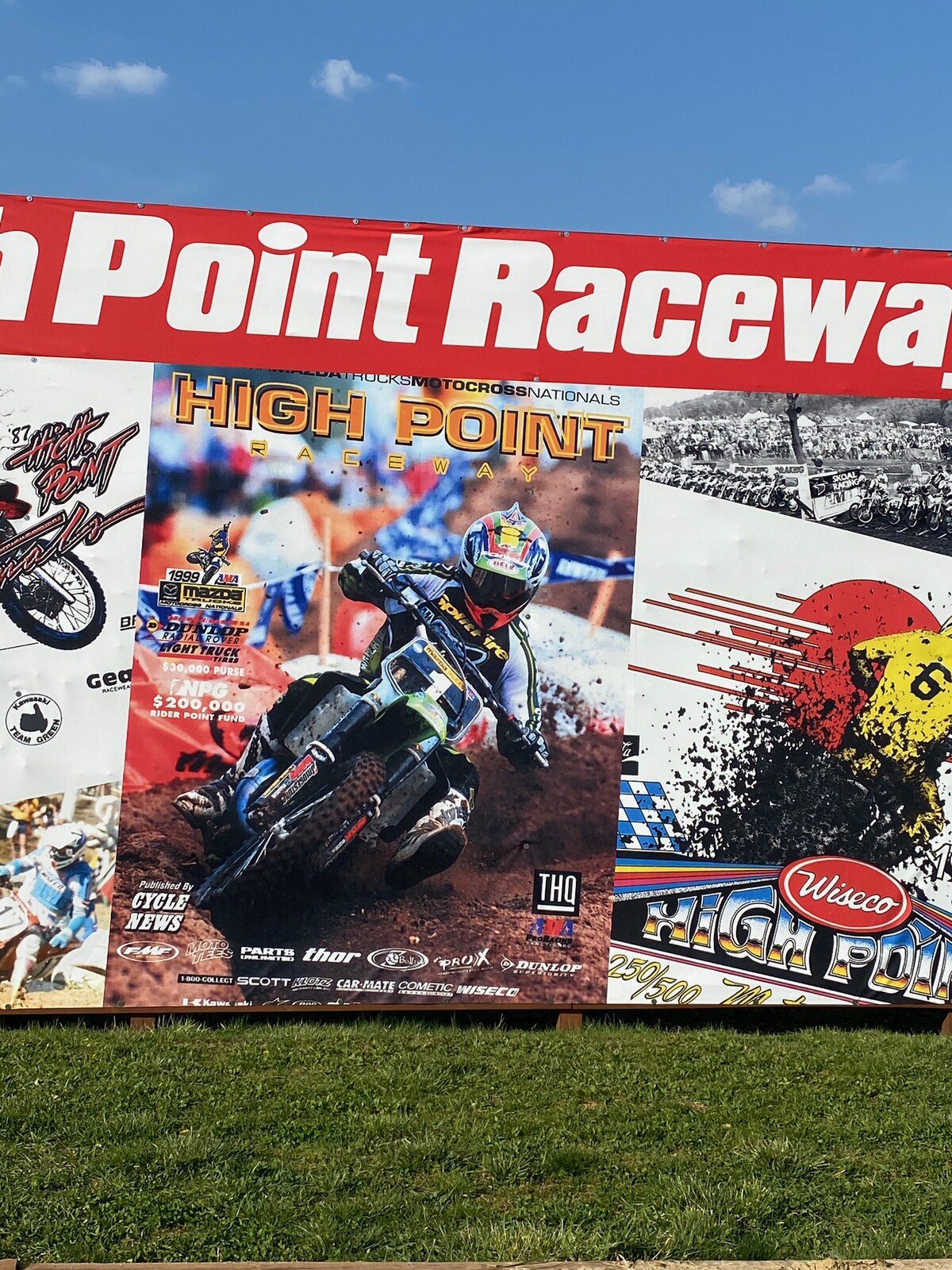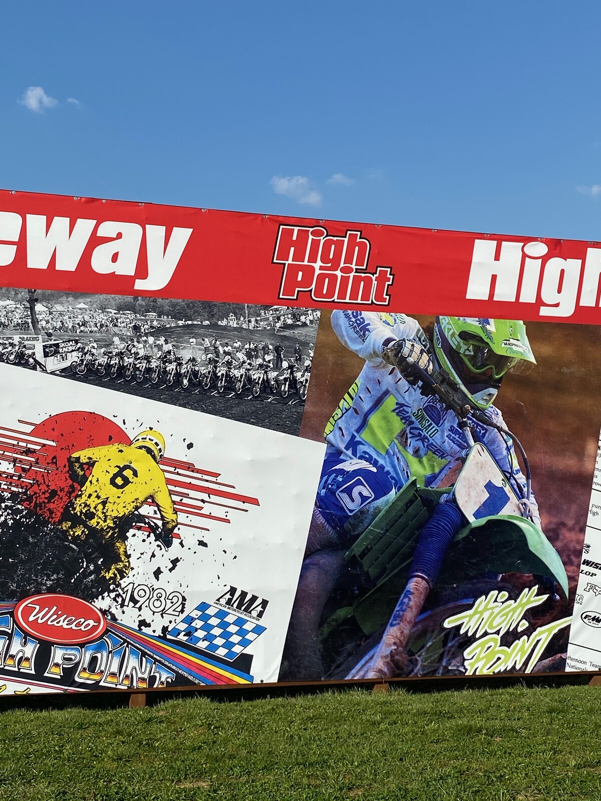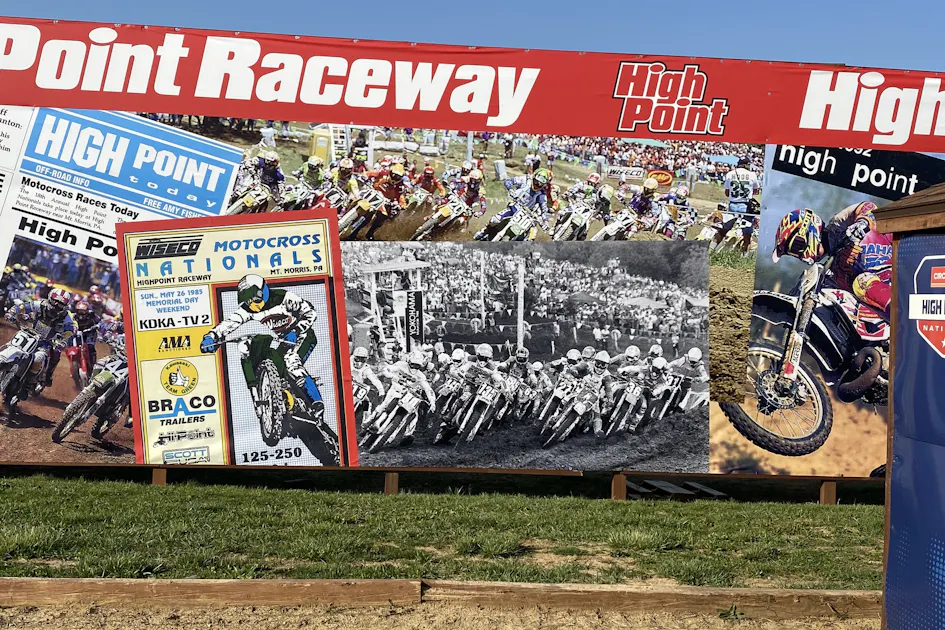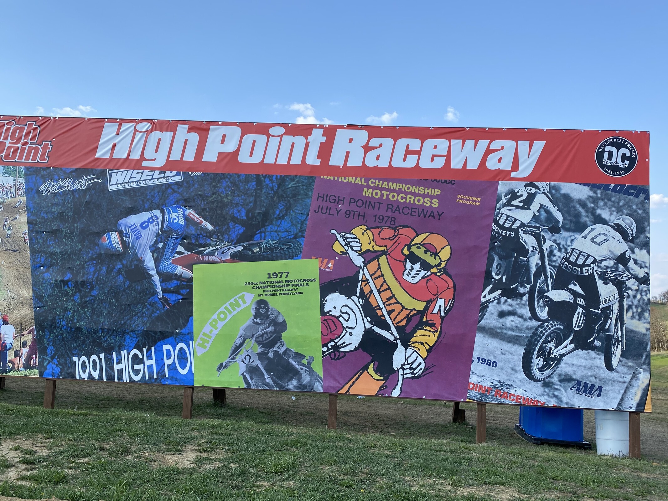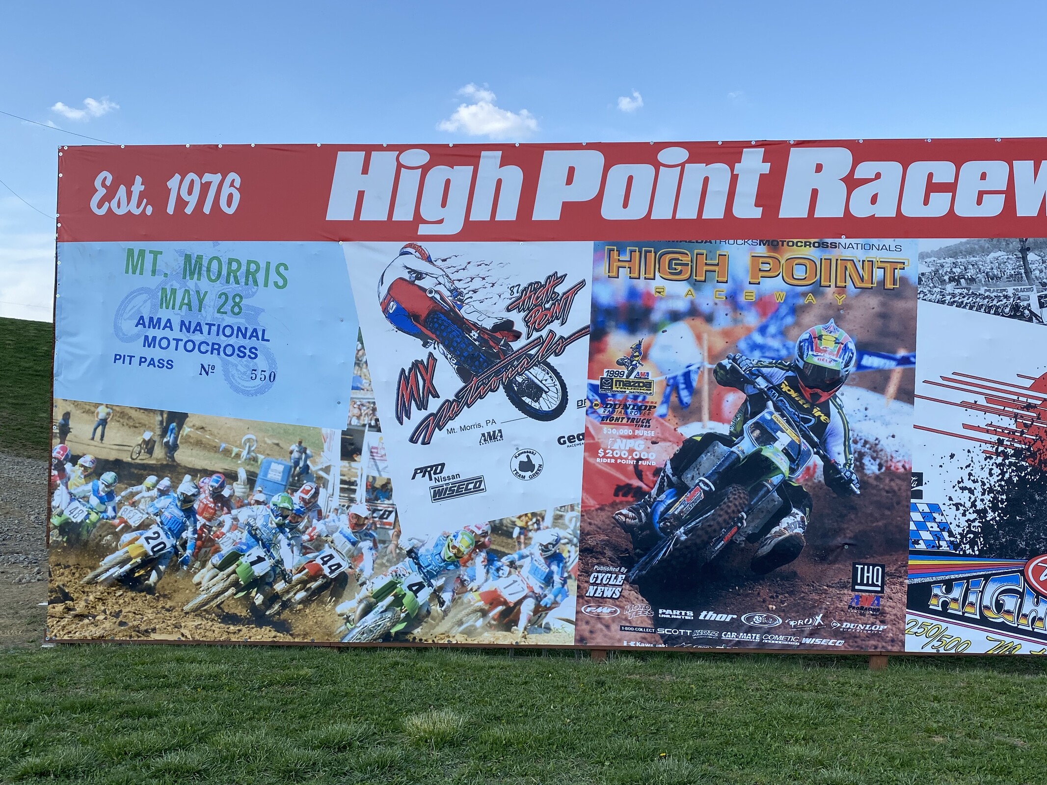 Earlier this year, we unveiled the brand-new historic backdrop behind the starting gate at High Point Raceway. It celebrates the history of the track, which was founded on the Holbert family farm in Mt. Morris, Pennsylvania, in September of 1976. One year later, High Point held its first outdoor national, and it has remained on what’s now the Lucas Oil AMA Pro Motocross Championship schedule every year—with the exception of 2020, when statewide COVID-19 restrictions barred large gatherings. During last year’s shutdown, we decided to do something cool to celebrate the history of High Point Raceway, so we asked Racer Productions graphic designer Heather Moebus to come up with a collage of old photos, pit passes, and program covers for the backdrop—something we saw done extremely well at the famed Assen TT circuit in the Netherlands at the 2019 Motocross of Nations, as well as the excellent “wall of fame” at Unadilla. High Point returns to the schedule this weekend for what will be the 44th Annual Pro Motocross event here, we thought we’d go into a little detail of just what each of those images mean for this week’s list. I’m going to try to do it in chronological order, but bear with me—there’s quite a bit of family history in here as well.