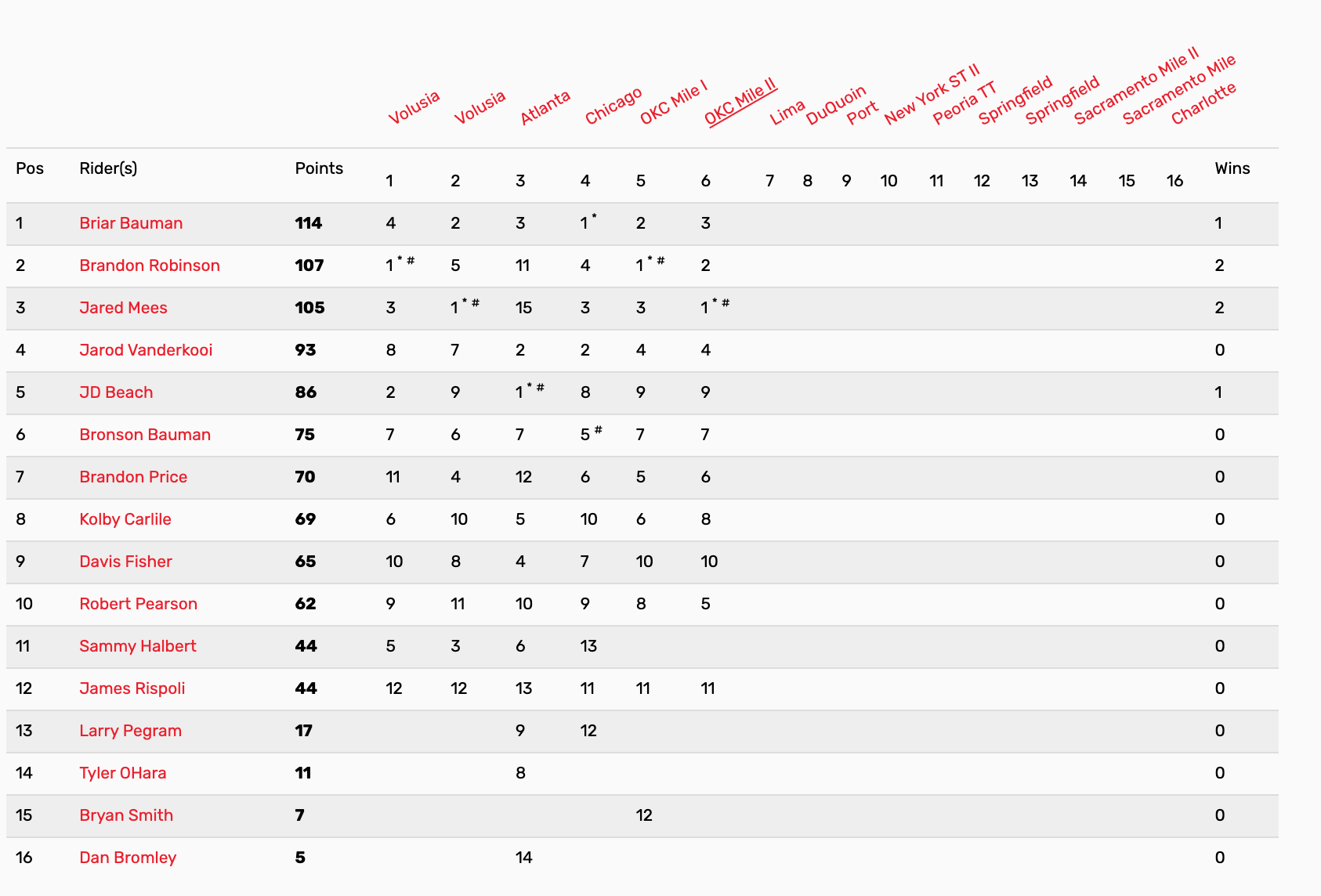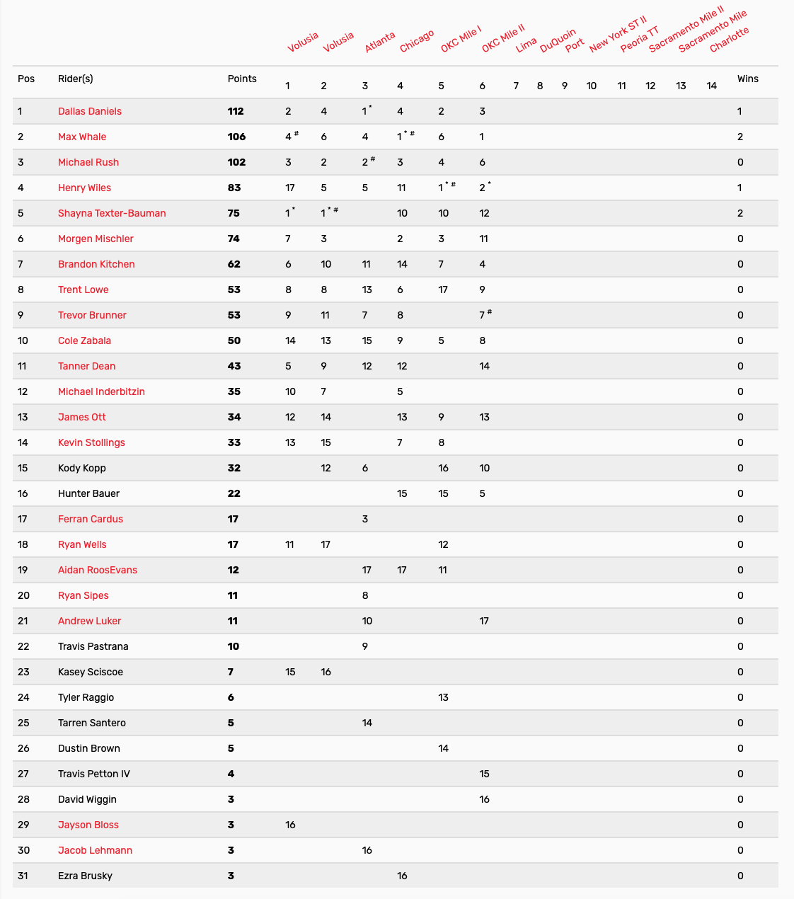 | Position | Rider | Hometown | Points |