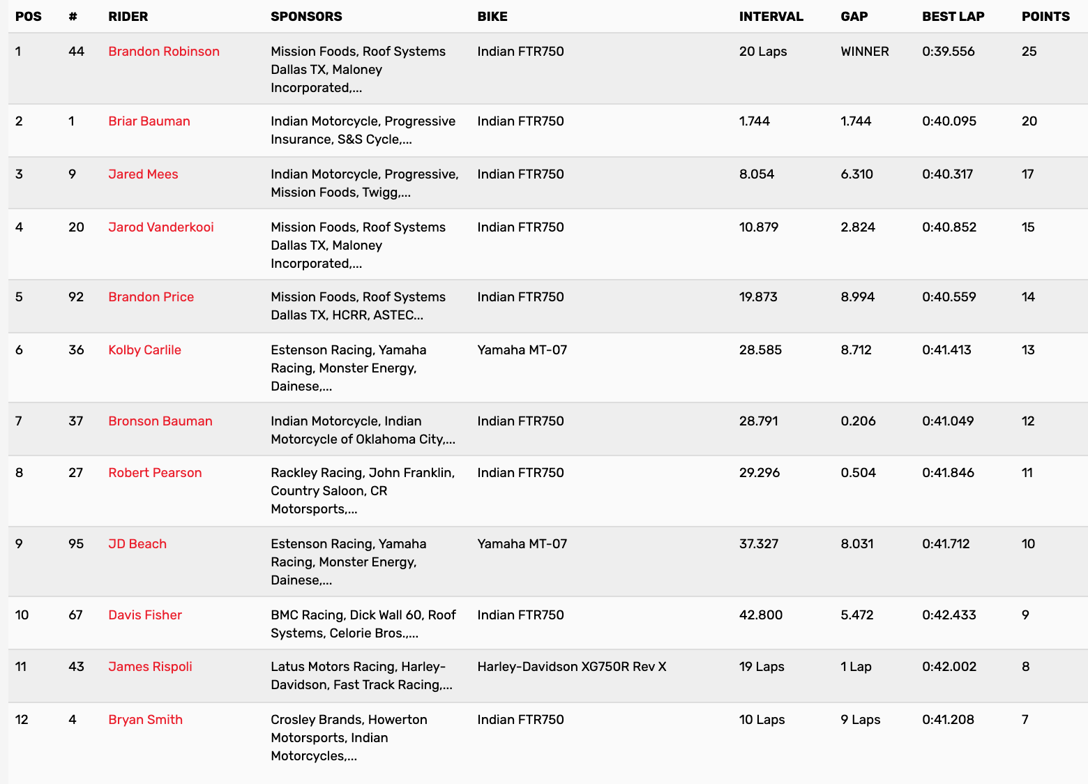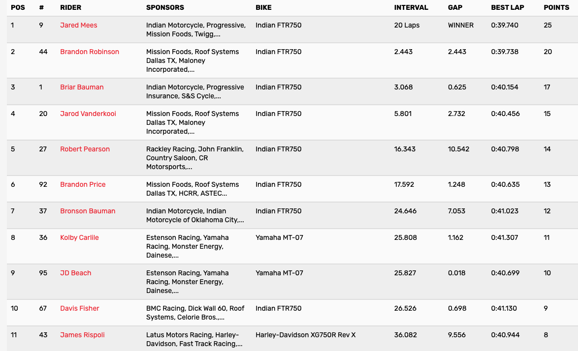 | Jared Mees | American Flat Track | AFT SuperTwins |
