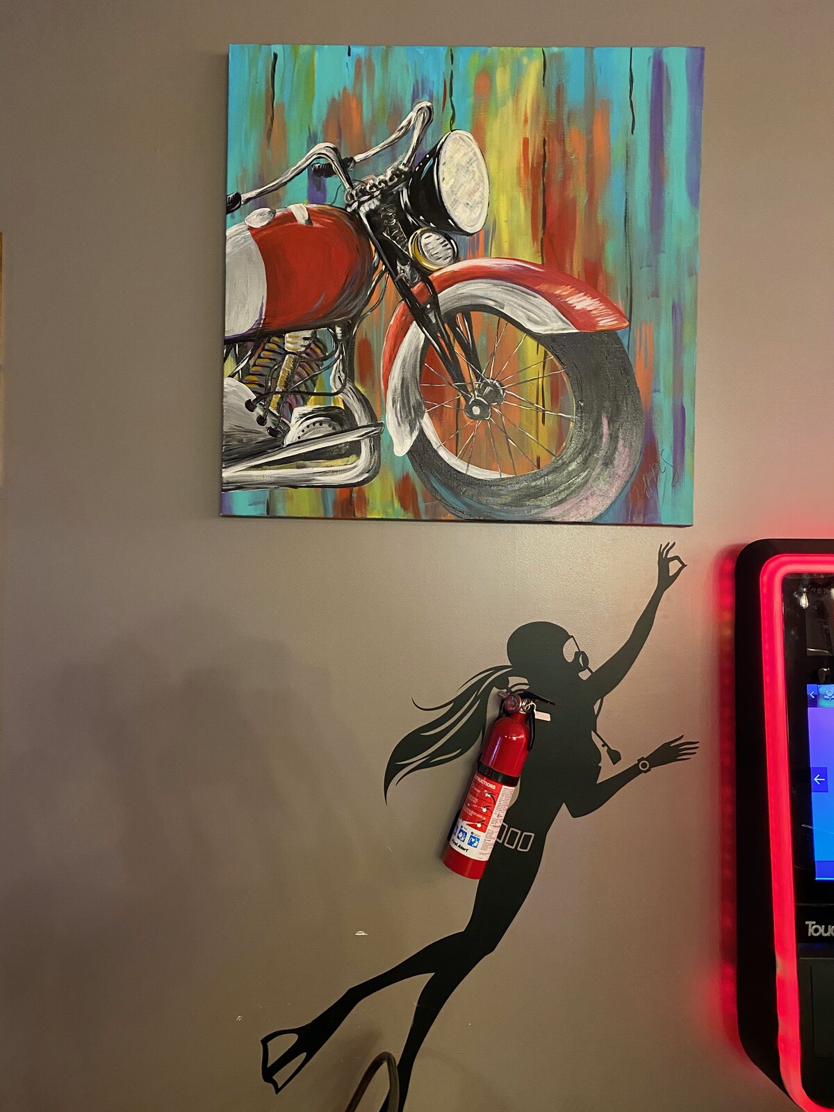 Remember when Leticia Cline was Miss Motocross for Lucas Oil Pro Motocross? She was also a model and appeared often in magazines like Maxim and Playboy. It's been maybe a dozen years ago, but she was also super nice and popular because she knew her stuff—Leticia grew up around motorcycles and especially loved riding vintage roadsters. Her Instagram (@leticiacline) describes her as "Journalist, Motorcycle Racer, Heritage Tourism Preservationist, Cancer Survivor, Buffalo Slayer & Proud Kentuckian." Oh, and she also has a very cool bar in Cave City, Kentucky, called The Dive (@thedivecavecity) which we stopped at last year on the way to Loretta Lynn's. It's filled with all kinds of cool vintage art as well as a few old motorcycles. I mentioned all of this because Leticia popped up in the headlines today as she's now dating Mike Wolfe of American Pickers, another person who loves old bikes and art and just any unique bit of Americana.