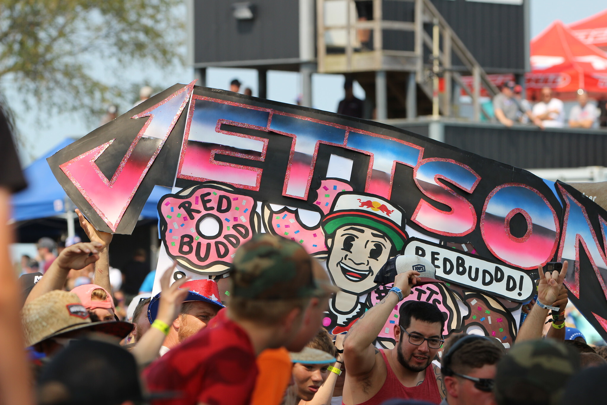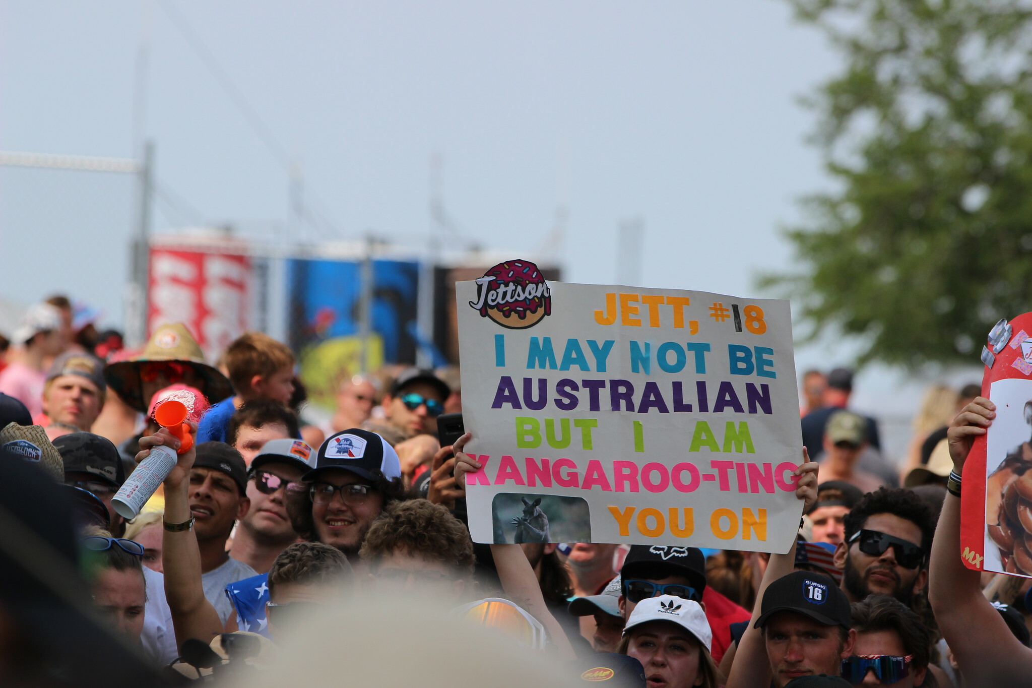 Our friend and contributor on the Gear Race Services track crew Alec Gaut snapped a few shots of some of the @jettson18 donut signs that popped up all around the RedBud track, and especially the podium, where fans hoping to get Jett Lawrence's attention and maybe his jersey had to battle with Evan the Deer to catch #18's eye. Here are a few.