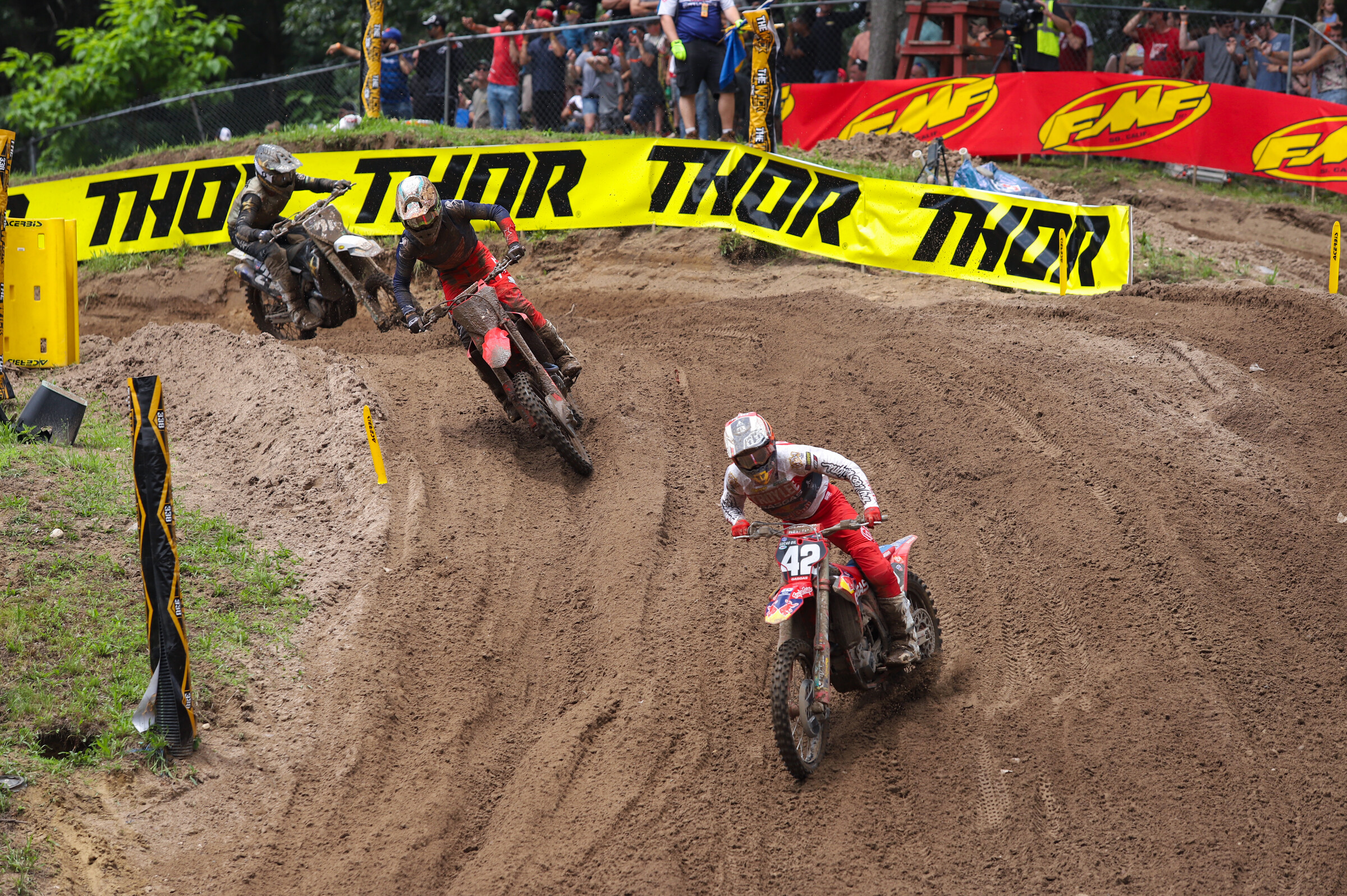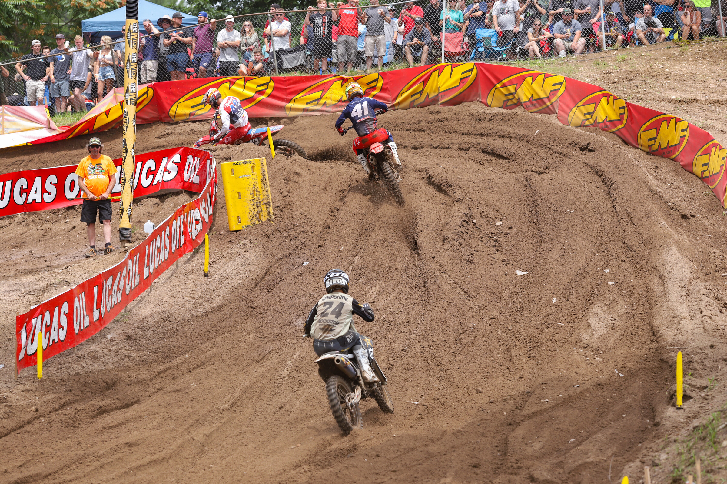 ![Lawrence earned the third and fourth Pro Motocross moto wins of his career at the Southwick National.]()