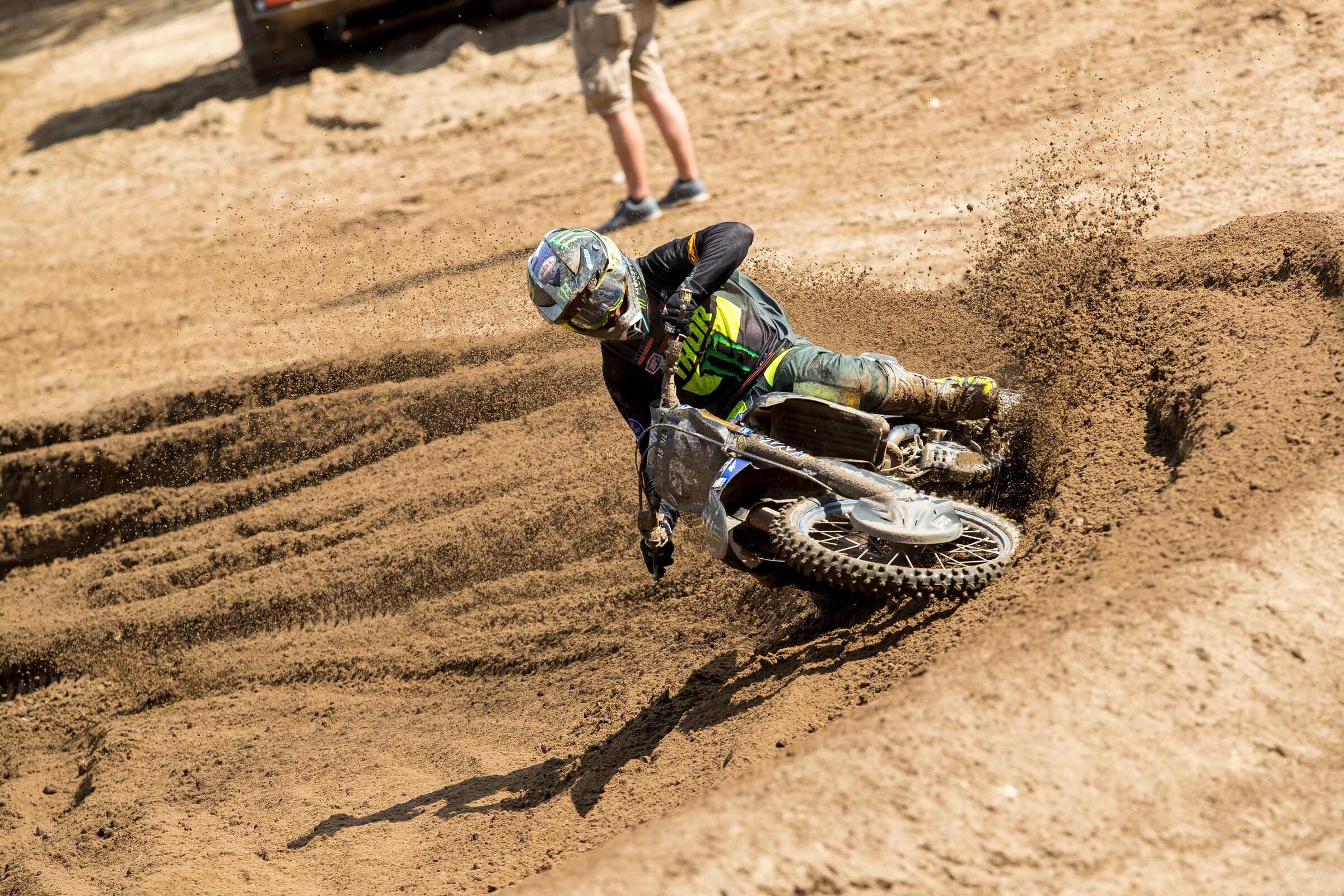 They held the gate way longer than they have all year. I think someone next to me flinched, and it kind of got me to flinch with them. It was a long gate drop and we were pretty zoned in on the gate dropping pretty soon. As soon as I did that, I pulled back and then it dropped. So, as soon as I got out of the gate, I was kind of close. I was banging some bars with some people, but all in all I had to shut down and just go into the first turn like 20th. Then going down that next straightaway I couldn’t see anything where I was going. I couldn’t pull a tear-off because I was going down a straightaway and there was braking bumps and all that. I think I ended up hitting the back of someone going up that next hill. It was a long moto from there on. I just had to give it everything. I kind of had to pay the price in the second moto. I didn’t really have the energy to keep a really strong pace. Once Jett got behind me in that second moto, obviously the championship came into my mind and I pulled everything out to try and get away from him. But I definitely paid the price by giving it all I had in the first one just to make it to sixth.