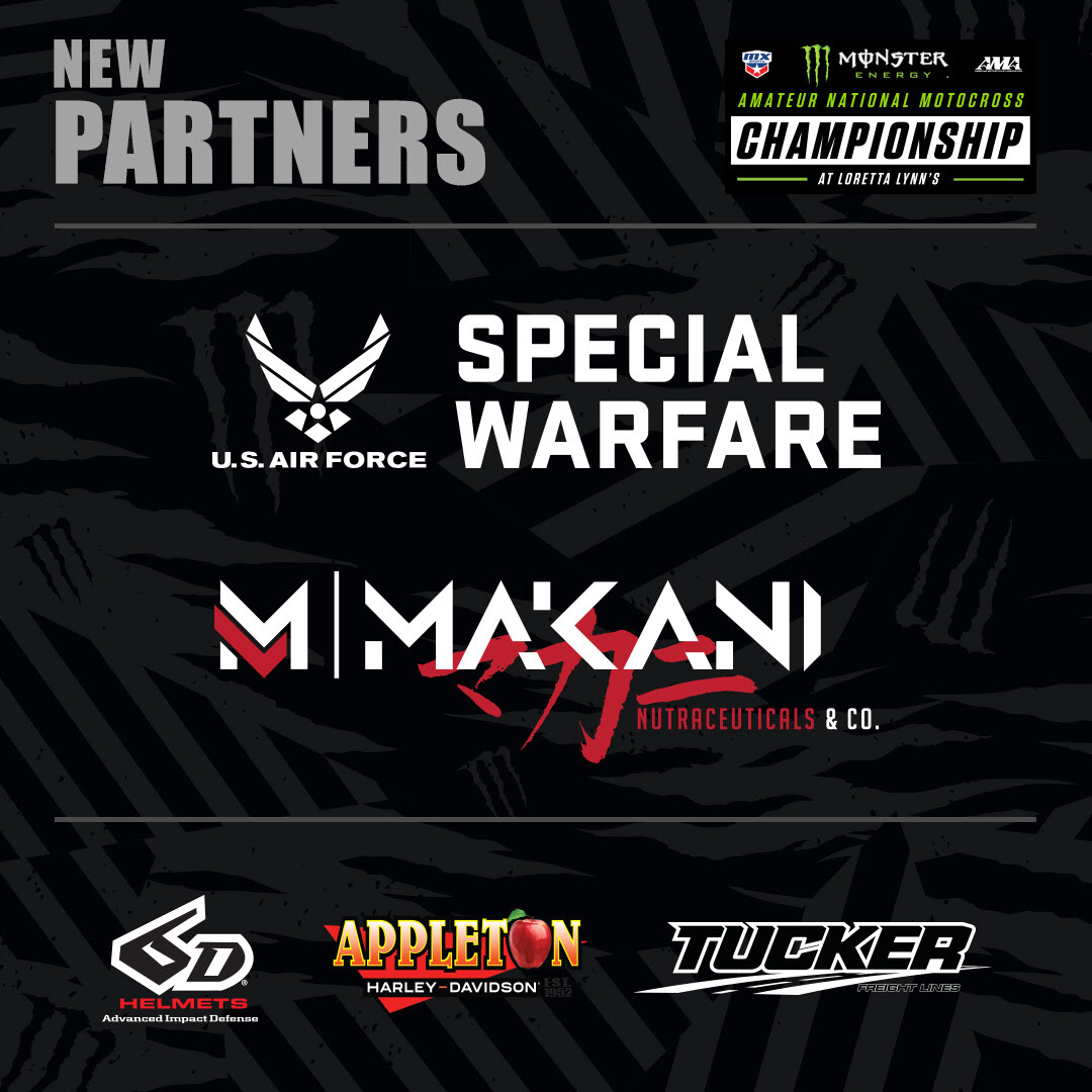 MORGANTOWN, West Virginia—MX Sports is excited to announce its new partners for the 40th Annual Monster Energy AMA Amateur National Motocross Championship. The U.S. Air Force, Makani, 6D Helmets, Appleton Harley-Davidson and Tucker Freight Lines have joined the star-studded line-up of companies who continue to sponsor the event. Throughout the week of August 2 through August 7, these newly added sponsors will be seen throughout the historic Loretta Lynn Ranch in Hurricane Mills, Tennessee.