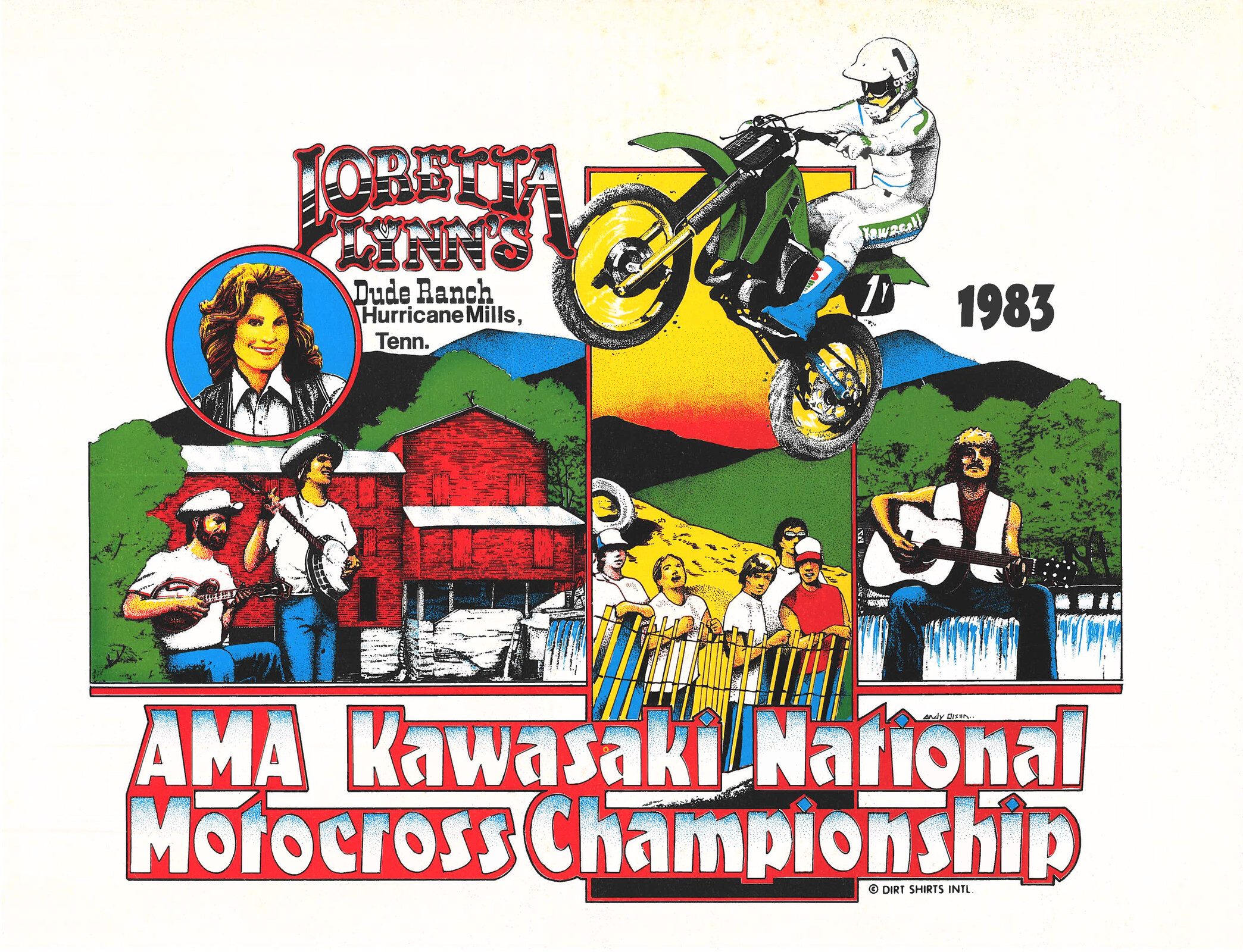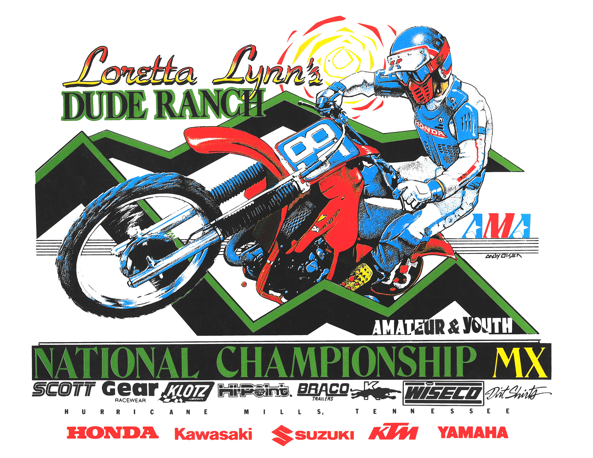 Two months later, Coombs returned to Loretta Lynn’s Ranch, this time with his co-promoter Shlegel and a man named Dave Jordan, the manager of a new amateur racing program that Kawasaki Motors Corp. was putting together called Team Green. His support would be crucial to the success of any event, especially a new one like this, as was the American Motorcyclist Association, which long wanted a bigger, more prestigious amateur championship. Jordan liked what he saw and agreed to support the event by making it a priority for his new amateur program. Finally, the AMA gave Coombs and Shlegel a five-year contract to hold the amateur national championship at Loretta Lynn’s Ranch, beginning in 1982.